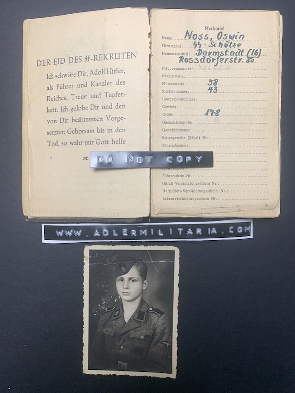 This is where the story of the young Waffen SS recruit Noss ends, on the rear of his photograph the text.
