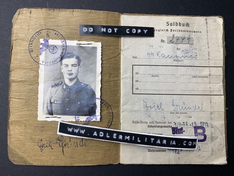 SS Soldbuch to SS Kanonier Erich GrĂ¼ndel