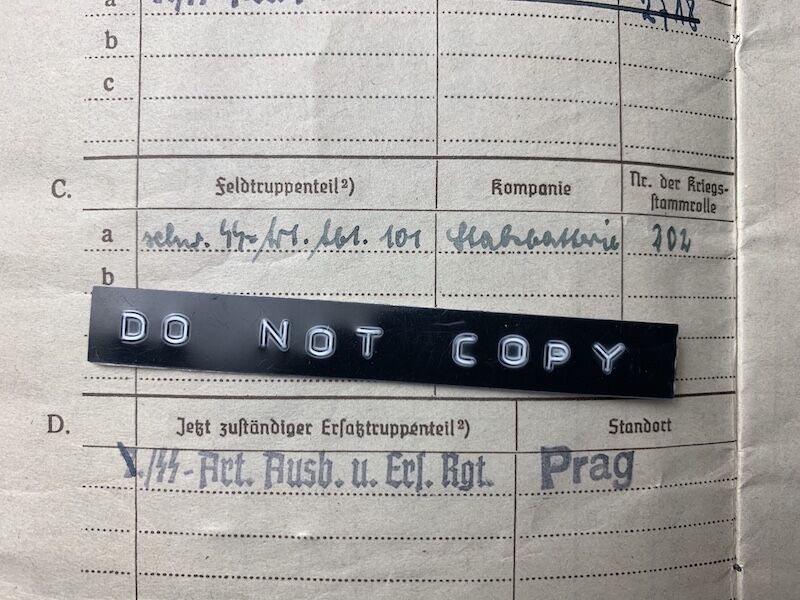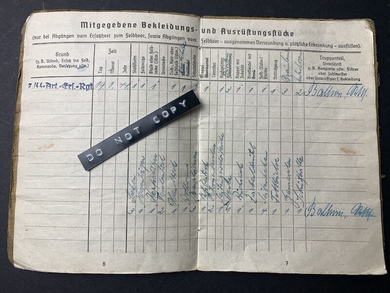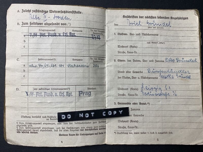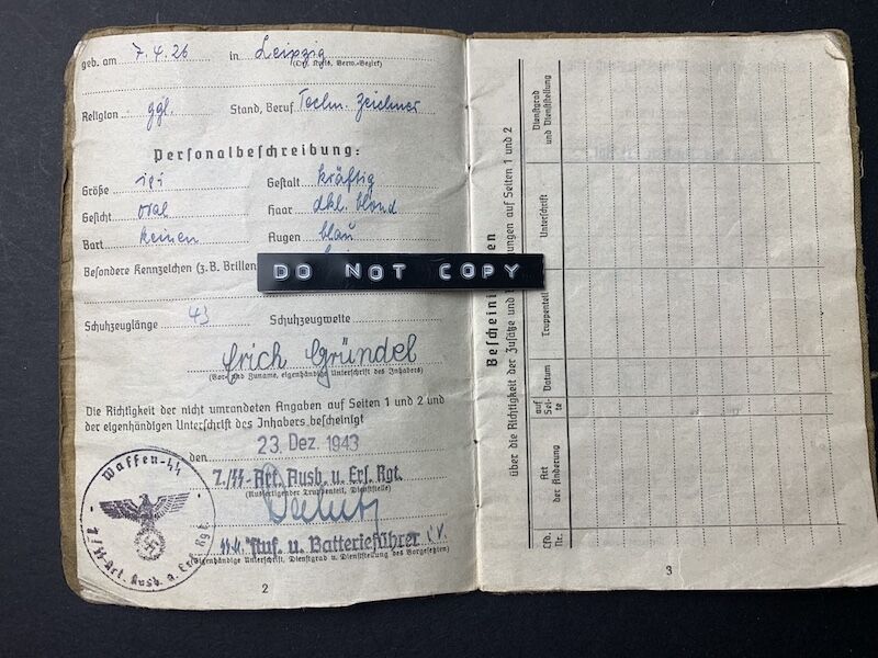 GrĂ¼ndel was issued his SS Soldbuch on the 23rd of December 1943 with SS Artillerie Ausbildungs und Ersatz Regiment