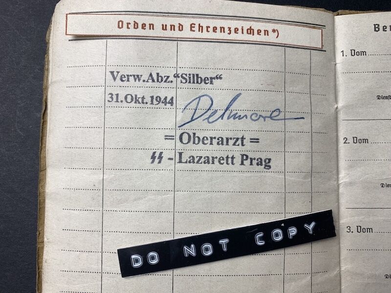 GrĂ¼ndel was badly wounded earning the Silver Wounds Badge in October 1944 in the SS Hospital in Prag.