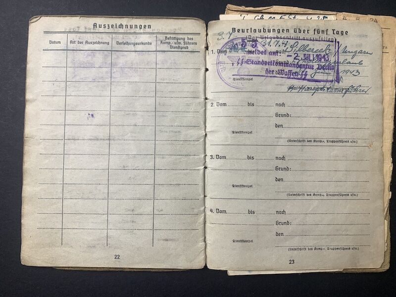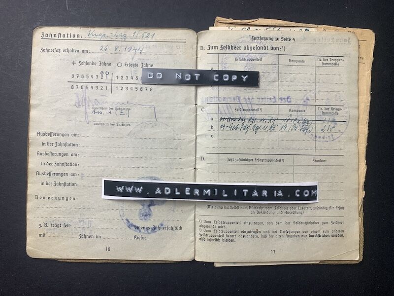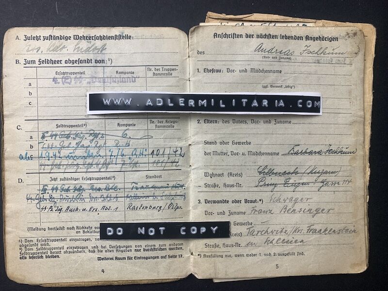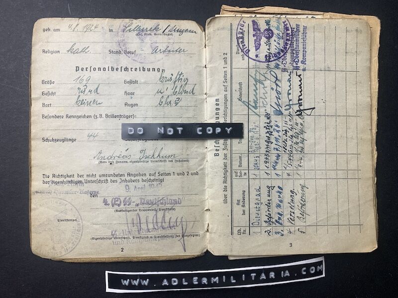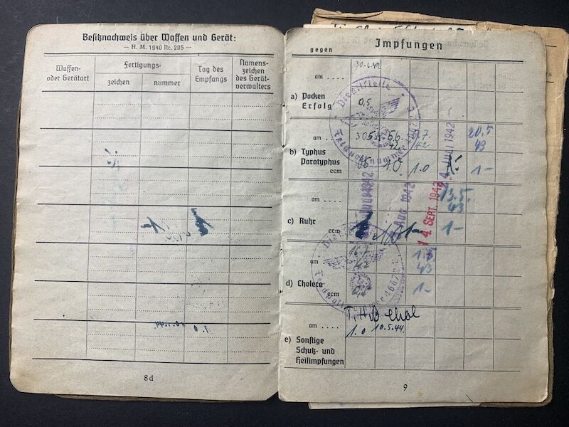 His Soldbuch was issued on the 9 April 1942 in Prag at the Himmler Kaserne.