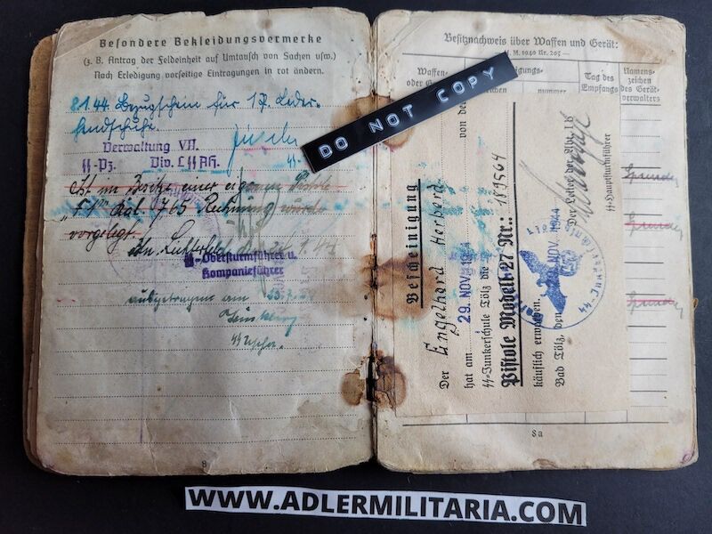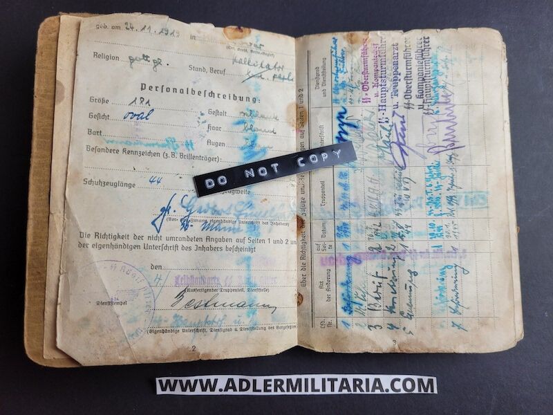 SS Soldbuch – SS-Standartenoberjunker Englehard – LSSAH – SS Junkerschule Tölz – ISA (On Hold)