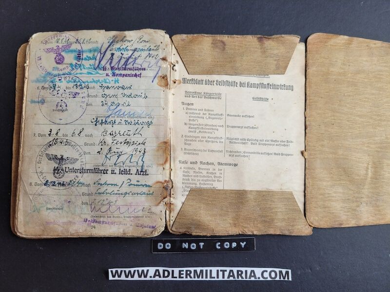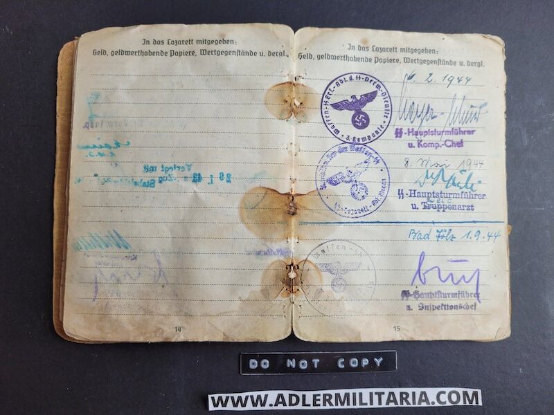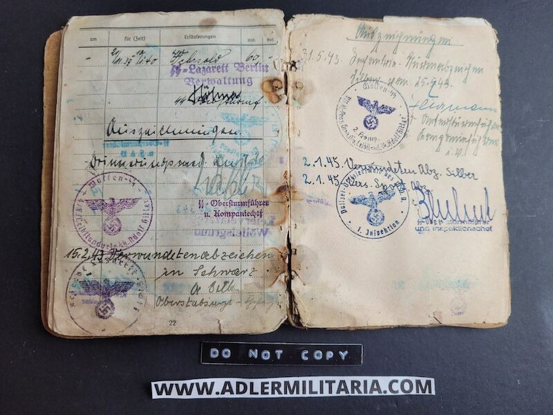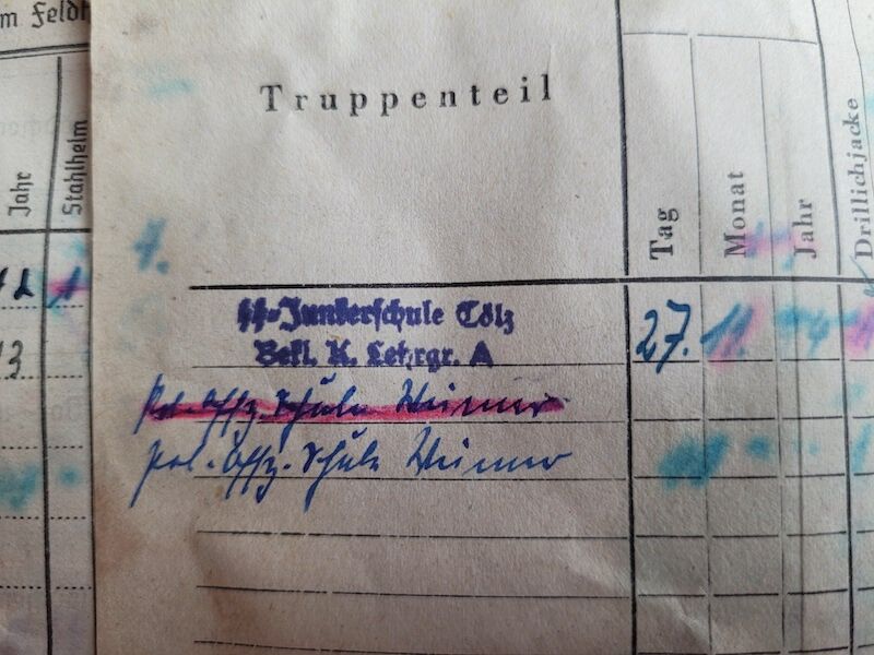 He raised the ranks, going through the war until his injury (31a – Gunshot wound) then he was posted to SS Junker Schule Tölz!