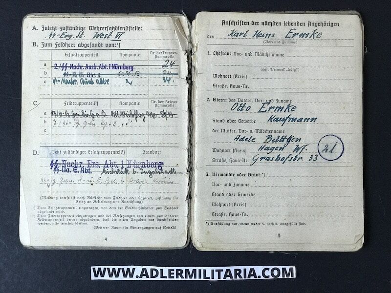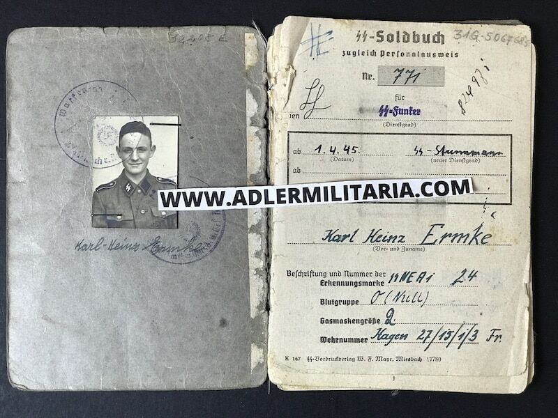 SS Soldbuch to SS Sturmmann Karl Heinz Ermke