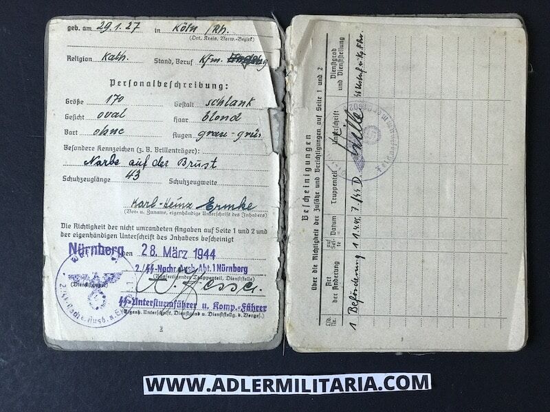 SS Soldbuch – SS Sturmmann Ermke – SS-Panzergrenadier-Regiment 3 “Deutschland” – Das Reich – Captured by US Troops 1945 ! (Reserved)