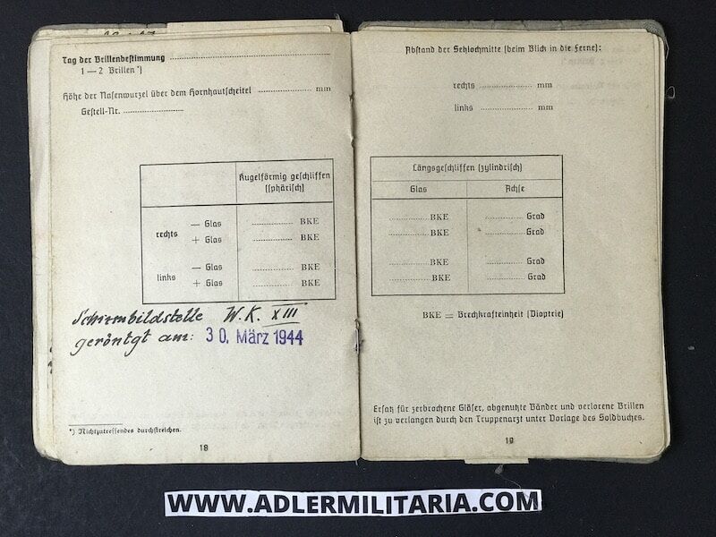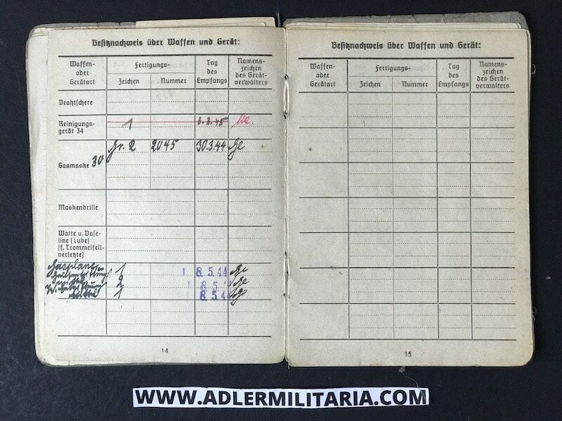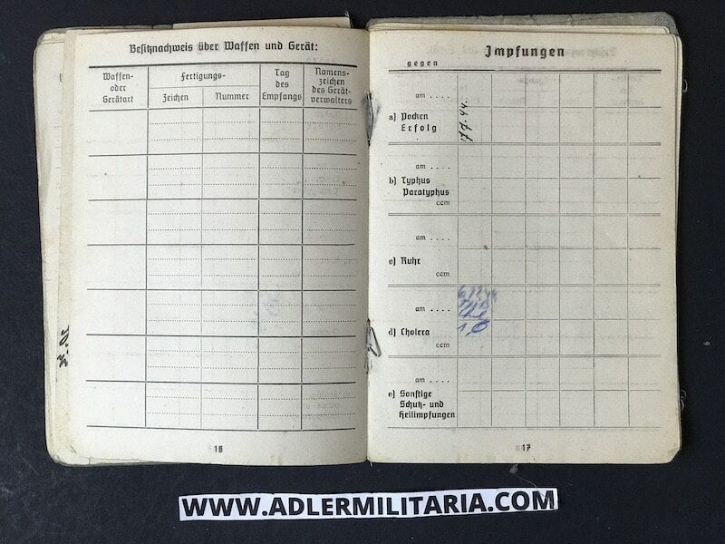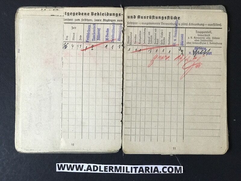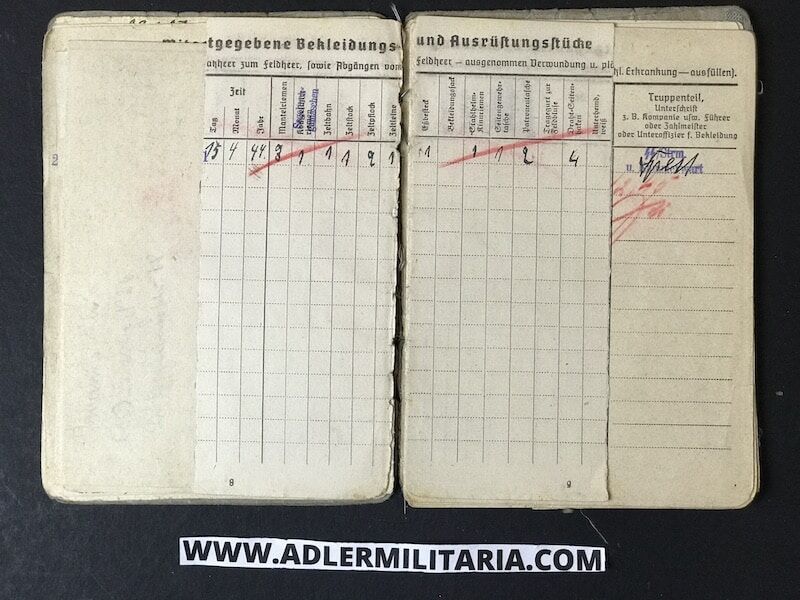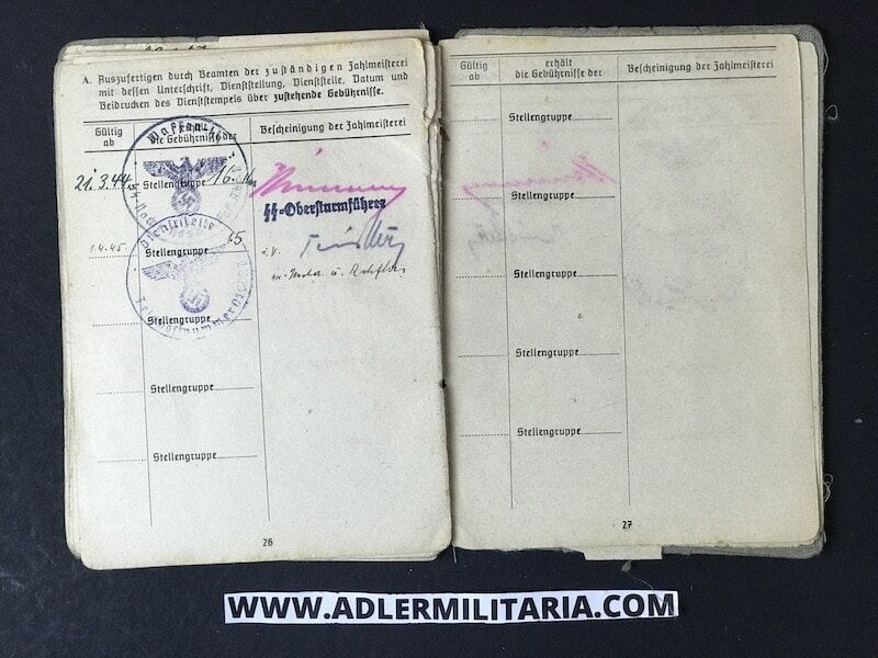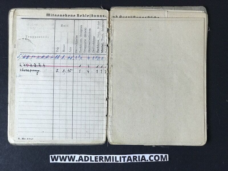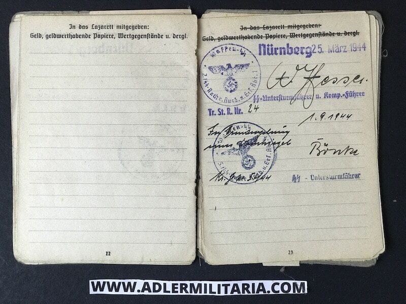 His SS Soldbuch was issued to him in March of 1944, in Nuremberg Germany at the SS training unit for Radio communications. His rank designation was SS Funker (SS Radio Man).