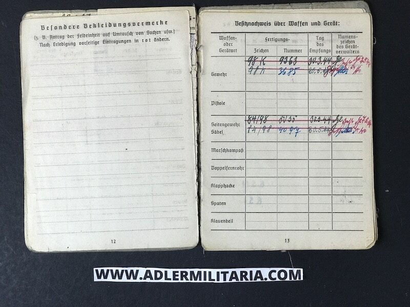 Issued a K98 Rifle and Bayonet: in March 1944 and again in May of 1944