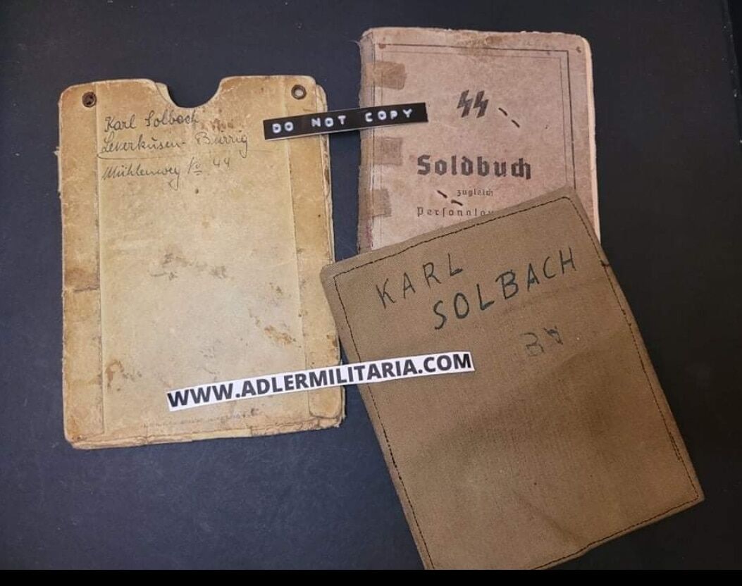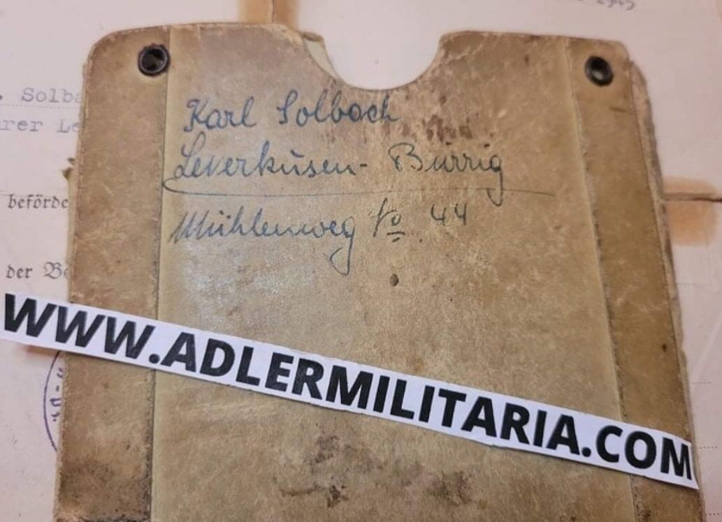 A nice Soldbuch with some very desirable entries! A really cool pouch holds his SS Soldbuch!