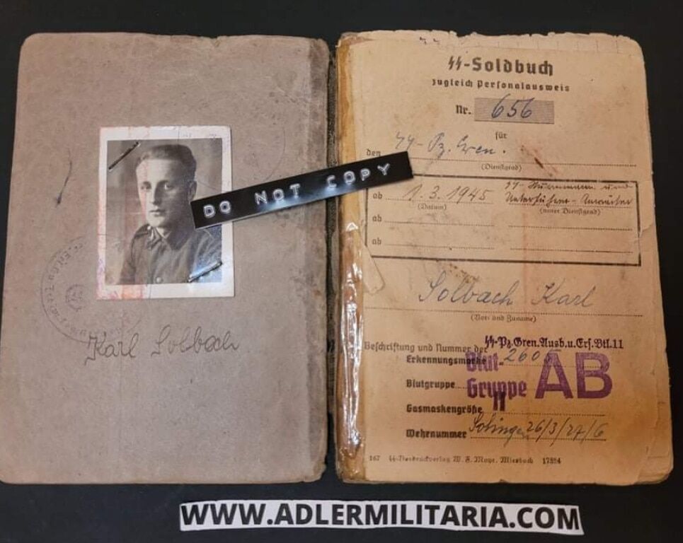 SS Soldbuch – SS Sturmmann Soldbach – SS Panzergrenadier Regiment 20 ‘ Hohenstaufen’ – Later trained StuG Commander! (Sold)