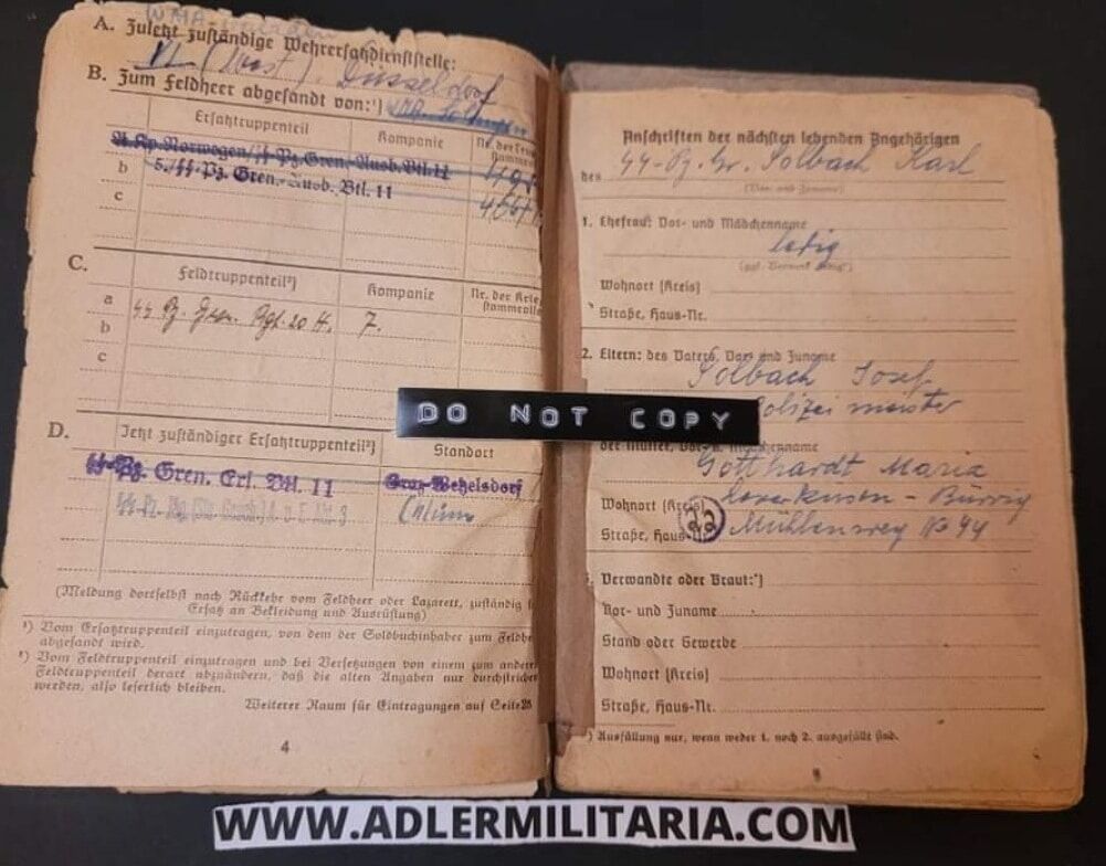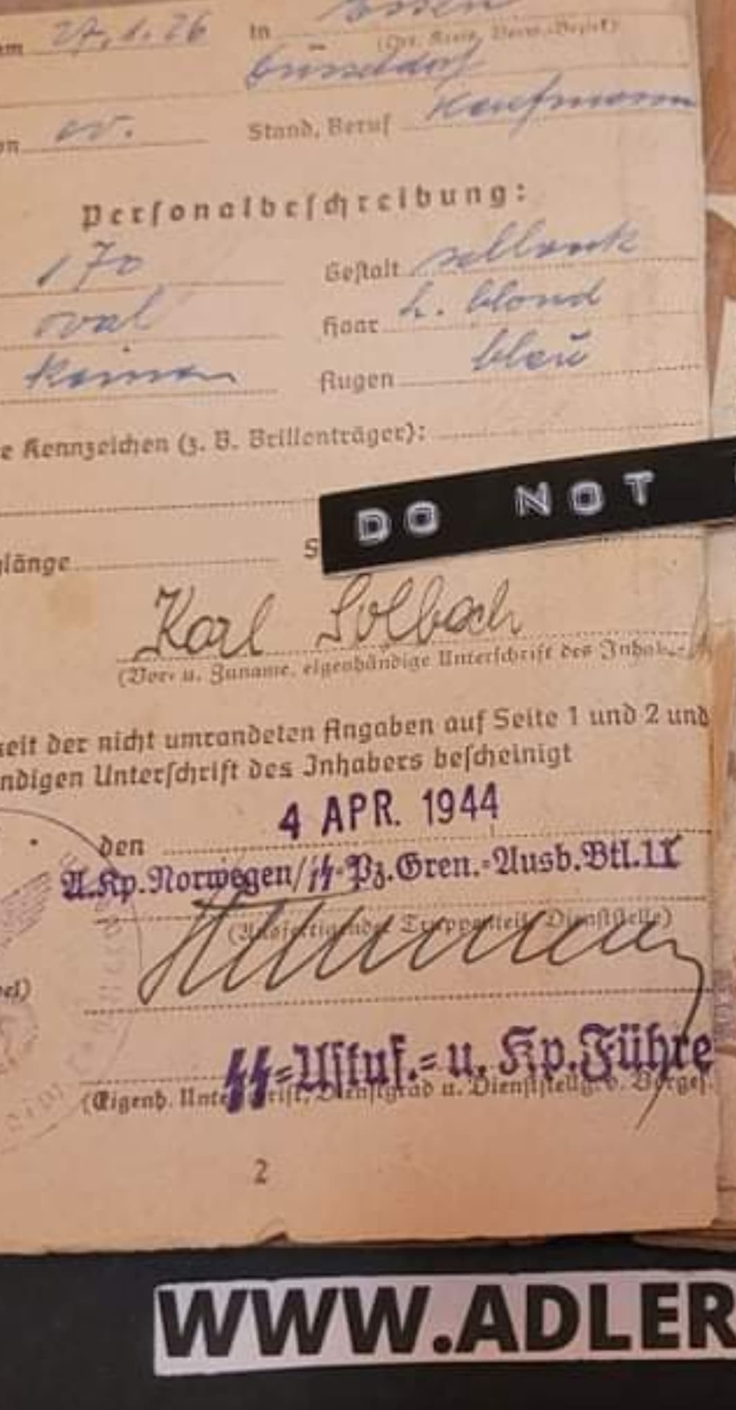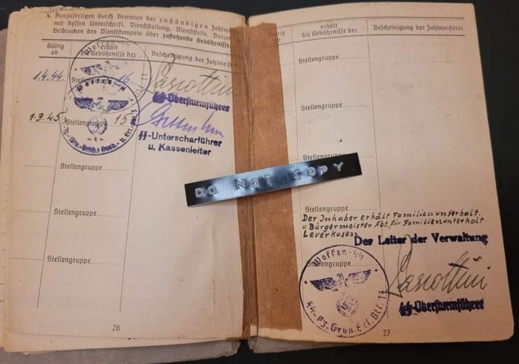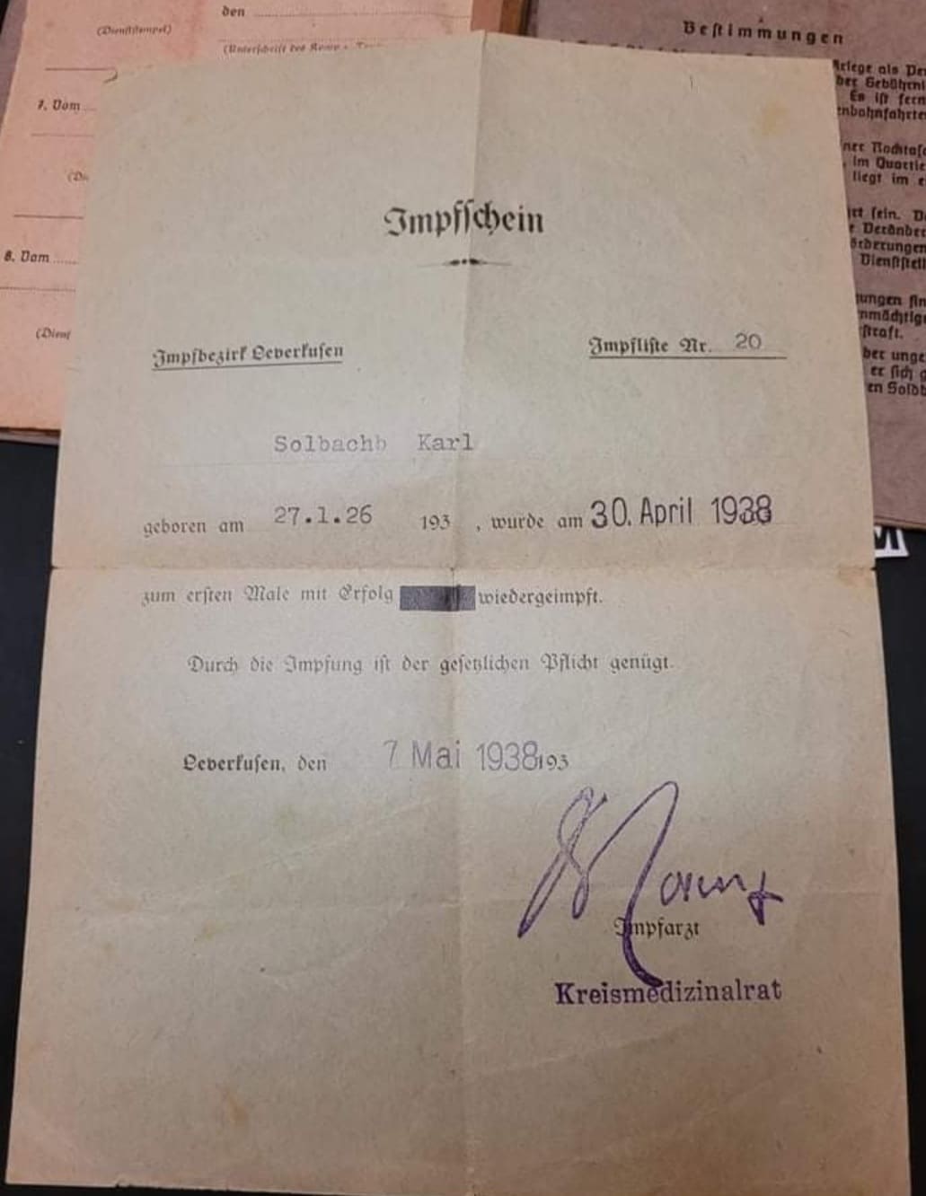 A two documents displaying his promotions were found in the back of the Soldbuch along with a training slip that had to be destroyed!