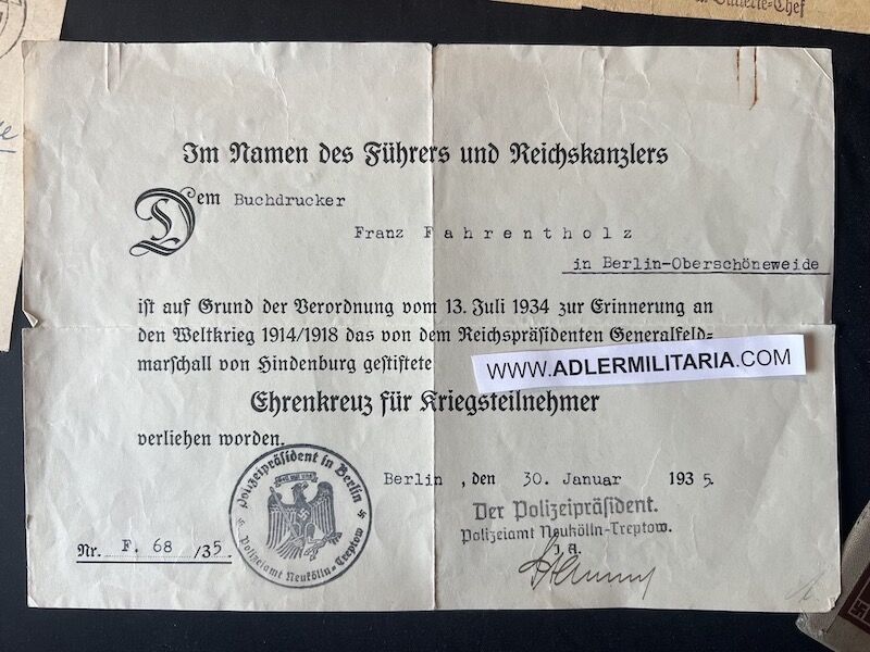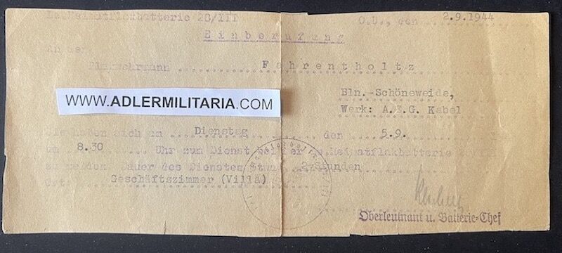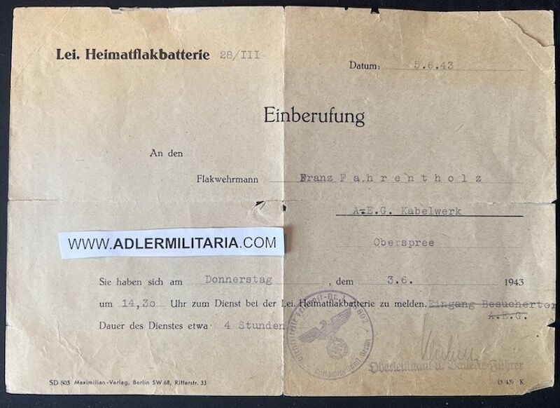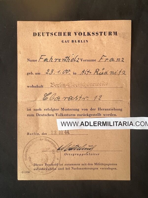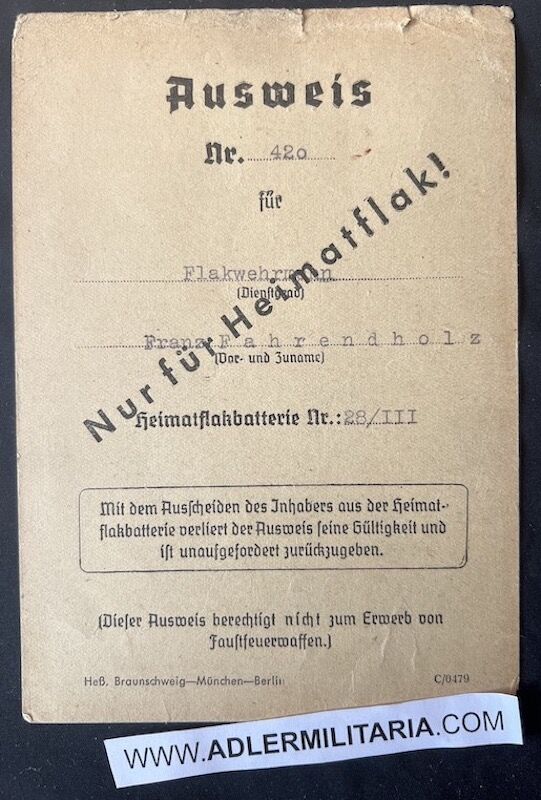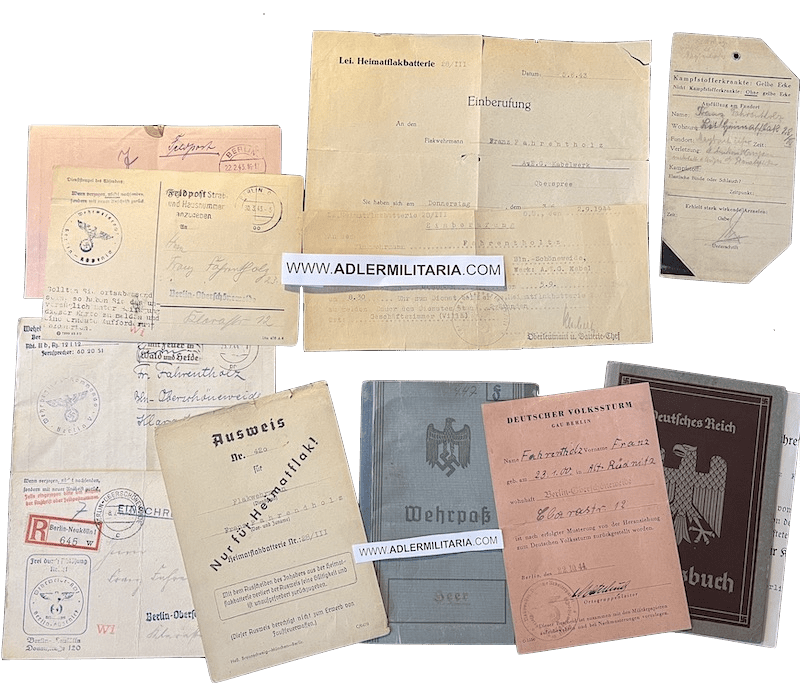Volkssturm/Heimat Flak – Flakwehrmann Fahrentholz – Wounded in Battle of Berlin Tempelhof Airport 1945 – Super Rare (On Hold)