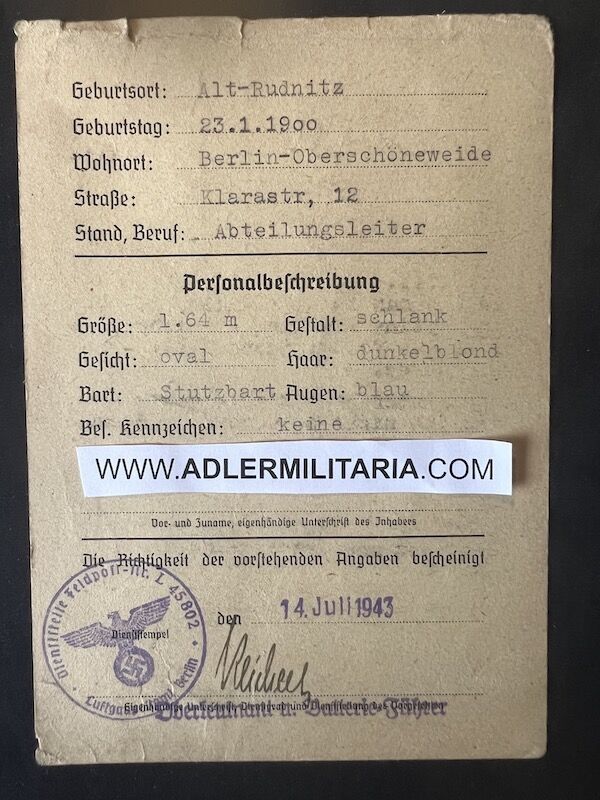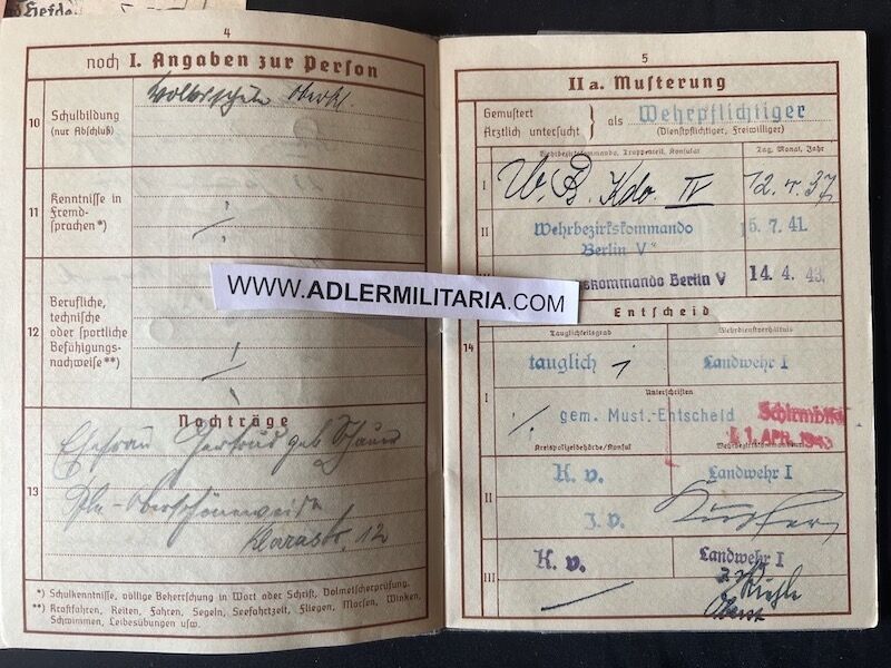 He fought with: 1st Flak Division, Leichte Flak Abteilung 979 (o) Stationed at the Berlin Tempelhof Airport.