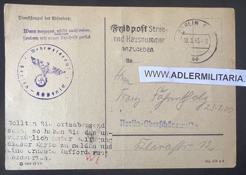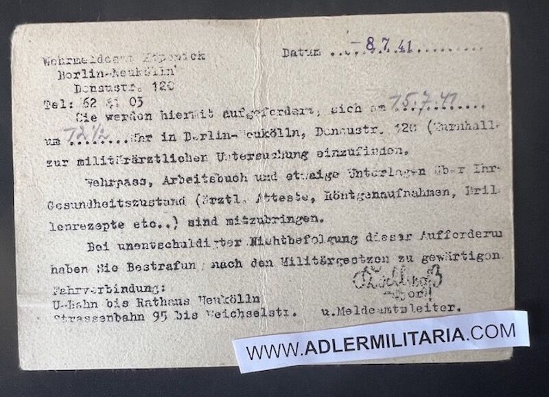 Comments: an extremely rare set for central Berlin, the wounding tag completing the picture on what happened to him.