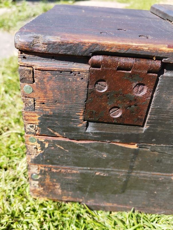 The box has had a slight repair at some stage, by way of a few modern nails at the rear. These could be removed if the new owner was to use this for display.