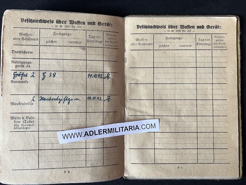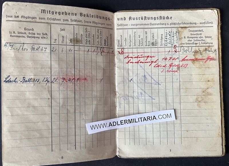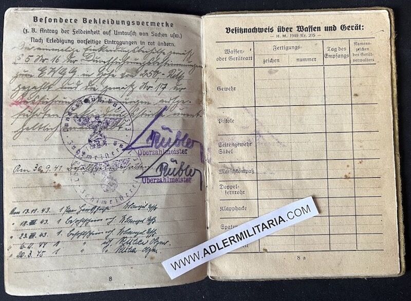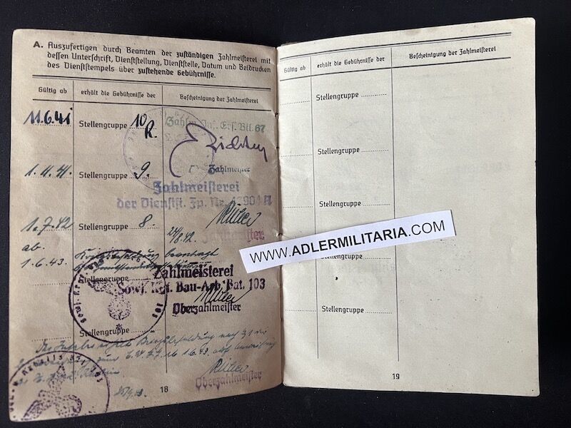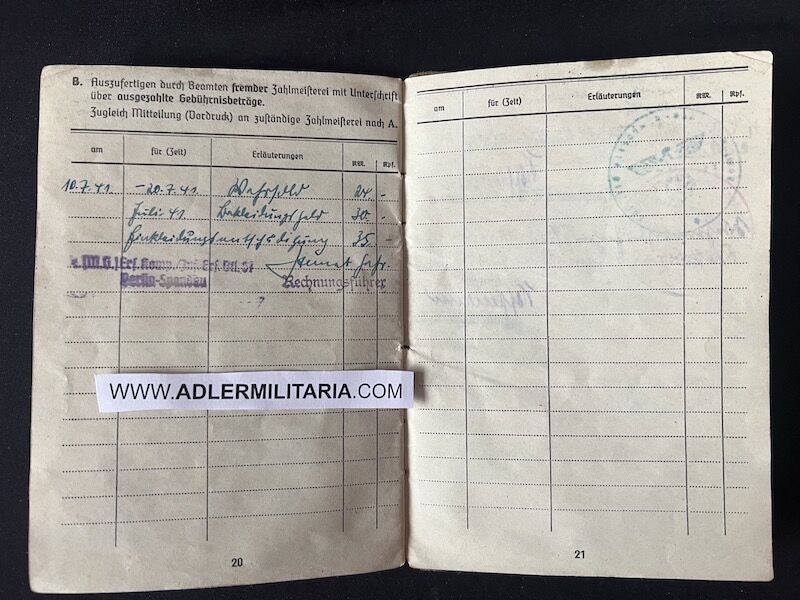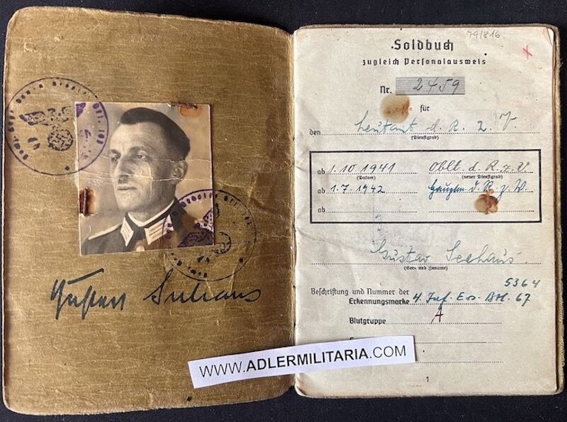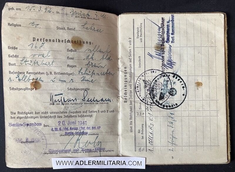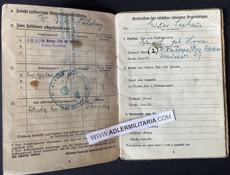 Soldbuch issued to Gustav Seehaus in Berlin Spandau with a replacement unit in 1941.