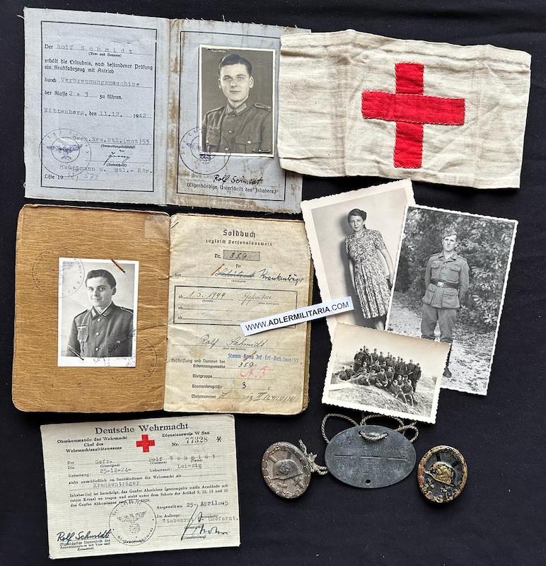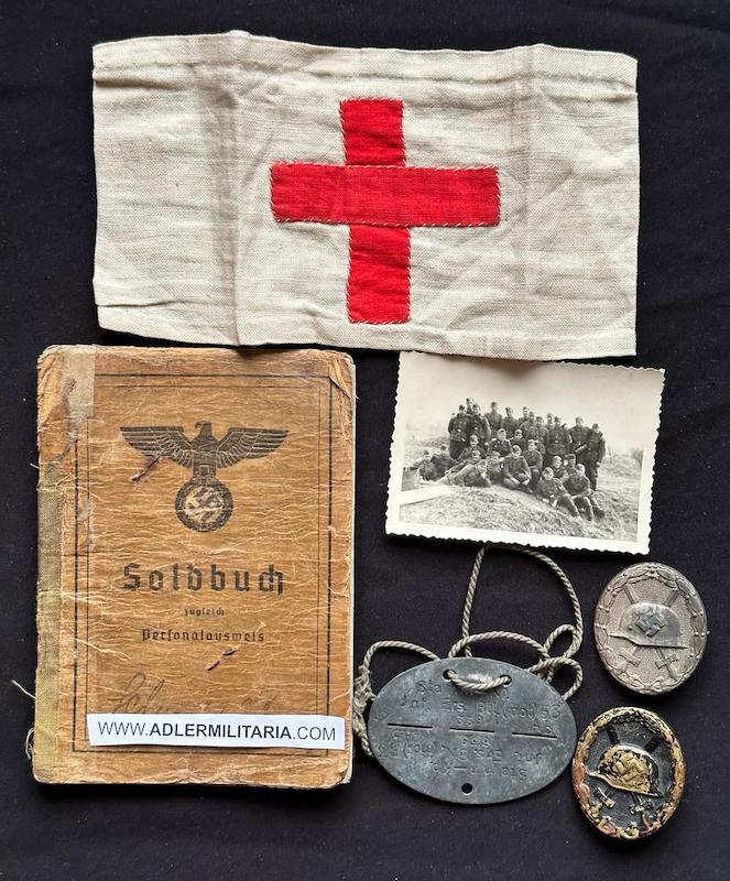 This is a nice set to a German Medic, wounded in combat. This was not a put together lot and came as is. Not easy to find such little trinkets of history today with all the medals, tag, armband etc.