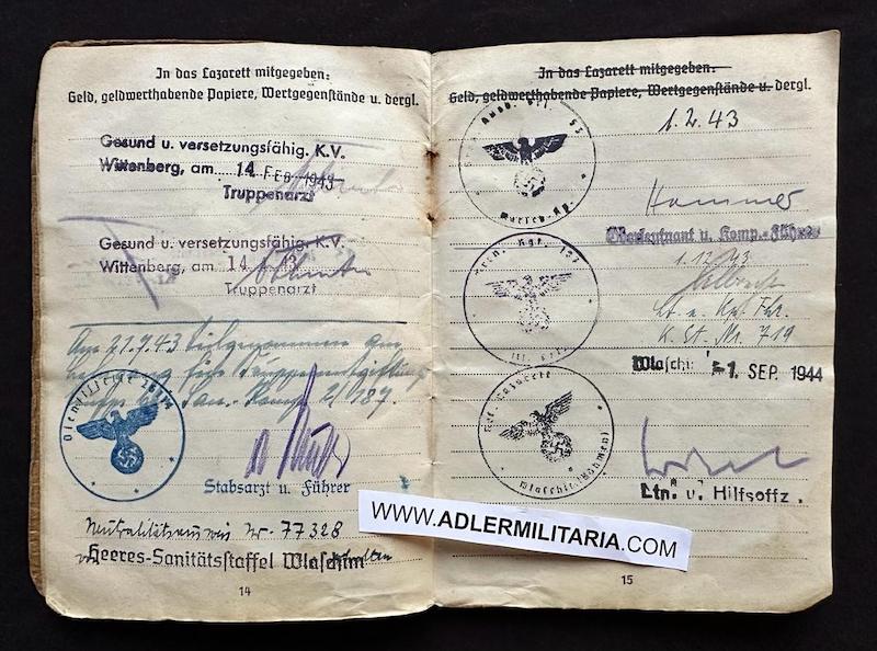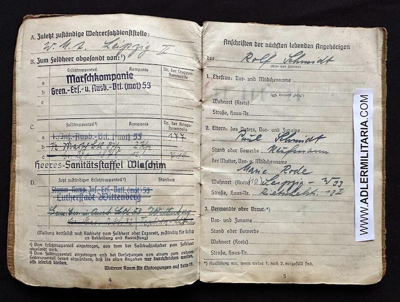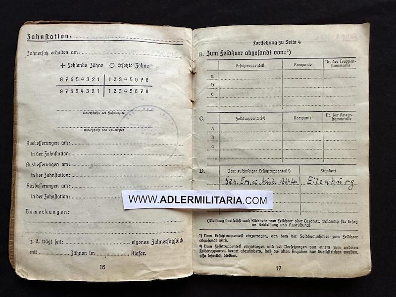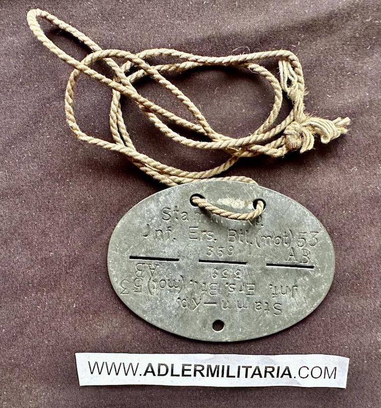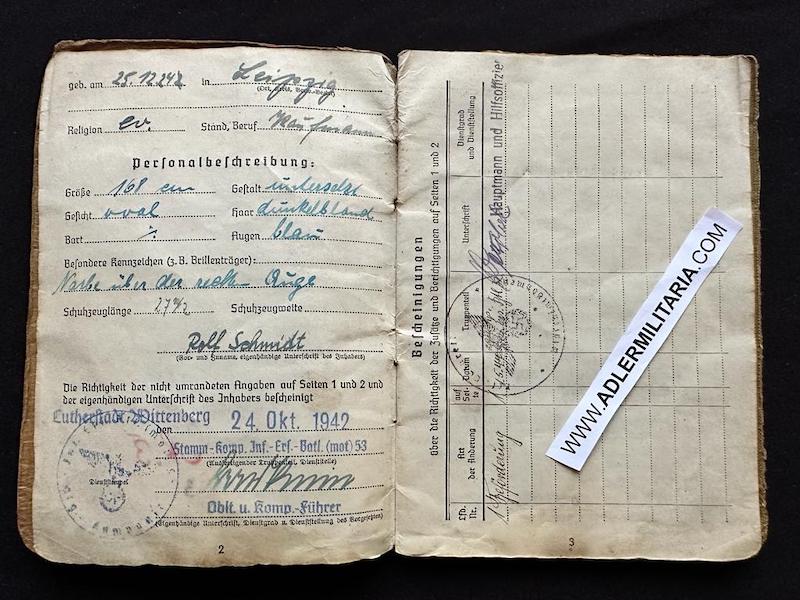His Dog Tag is complete with drawstring and is matching to the Soldbuch as per Page 1.