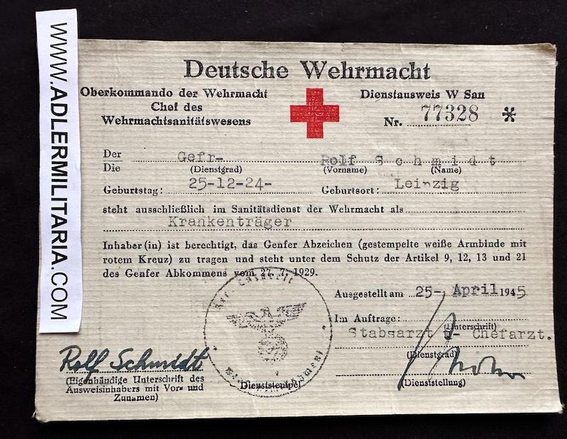 Soldbuch to Krankenträger / Gefreiter Rolf Schmidt