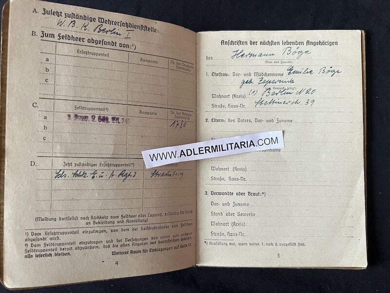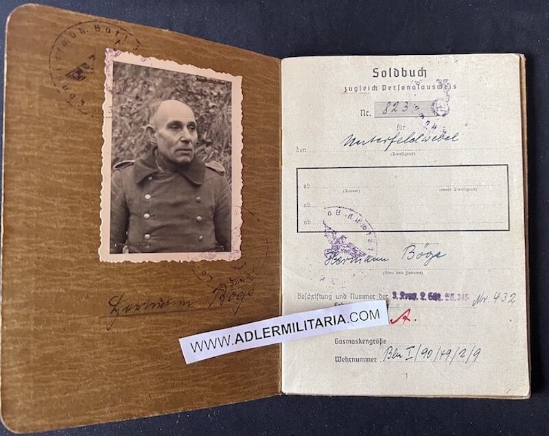 Wehrmacht Soldbuch – Uffz Böge – Landesschützen Batl 345 – Battle of Berlin 1945 (Hold)