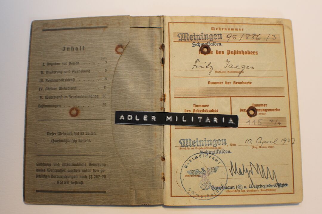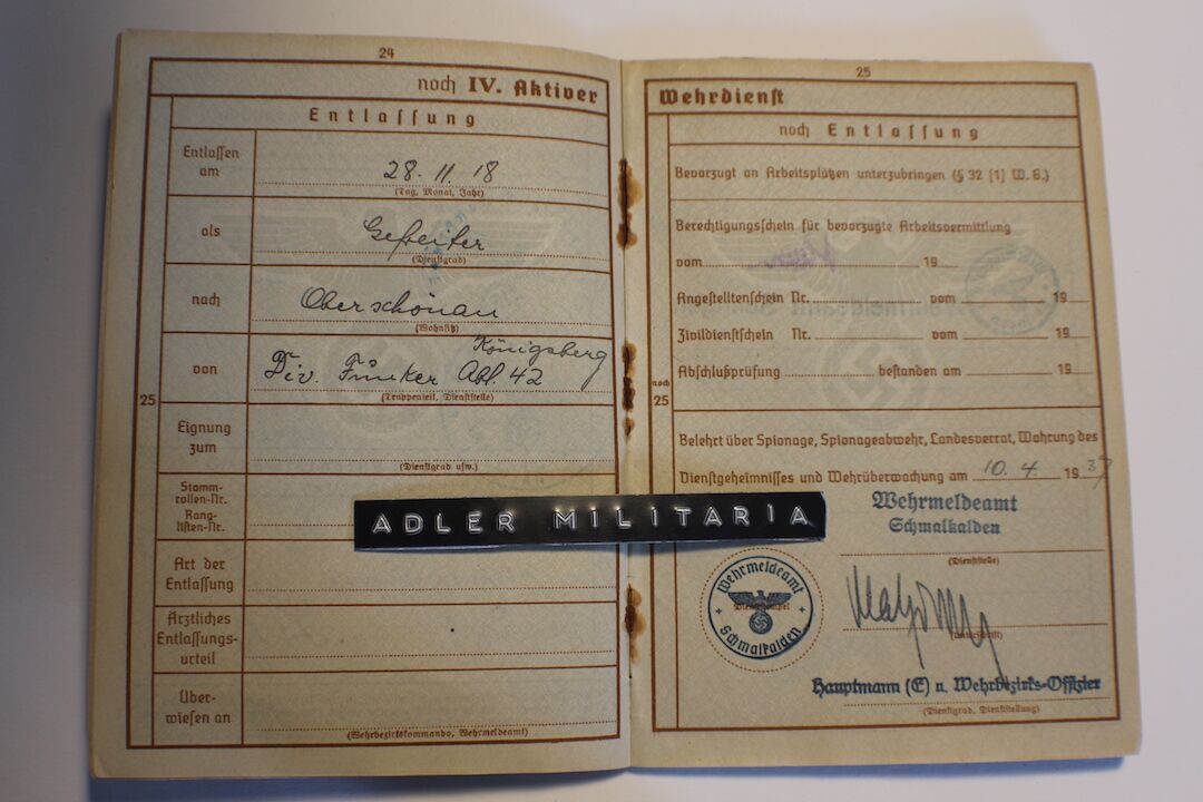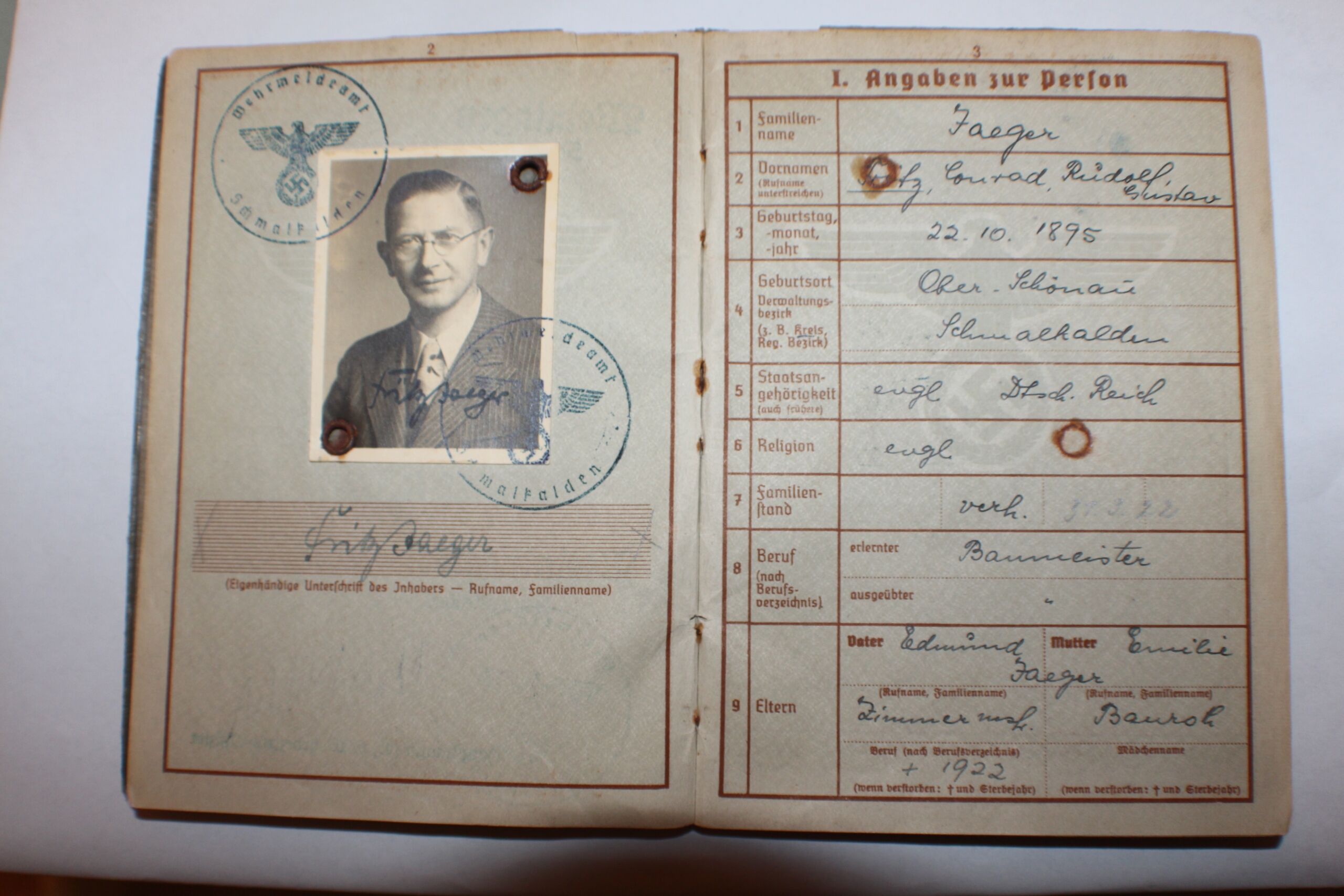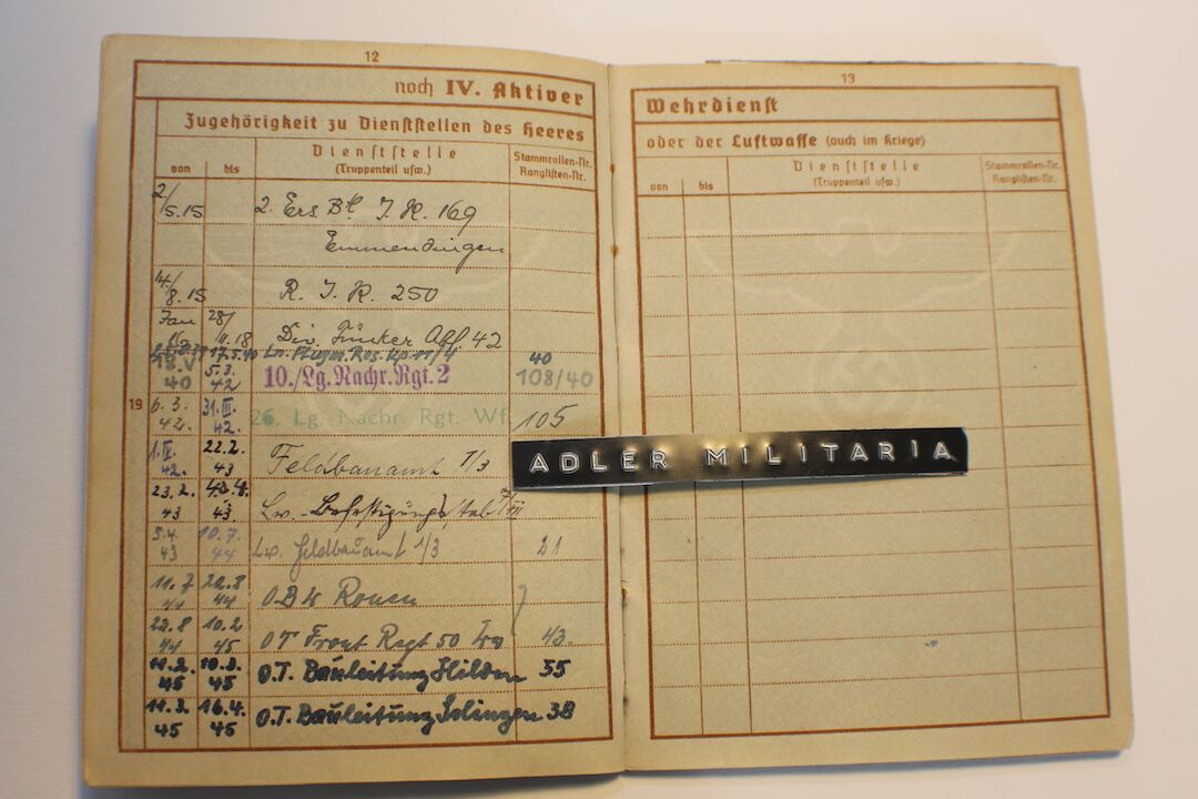 Wehrpass – Jäger – Org TODT! NCO and Building Inspector! WW1 and WW2!