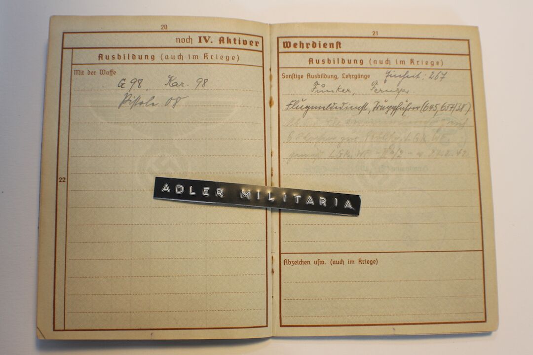 During his service he was trained on the G98, K98, and Luger Pistol P08. He was extensively trained Flug Meldungen – Flight messages.