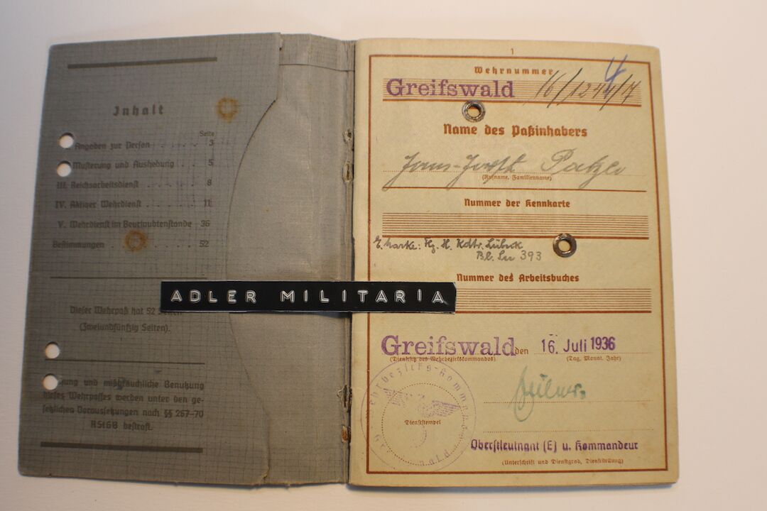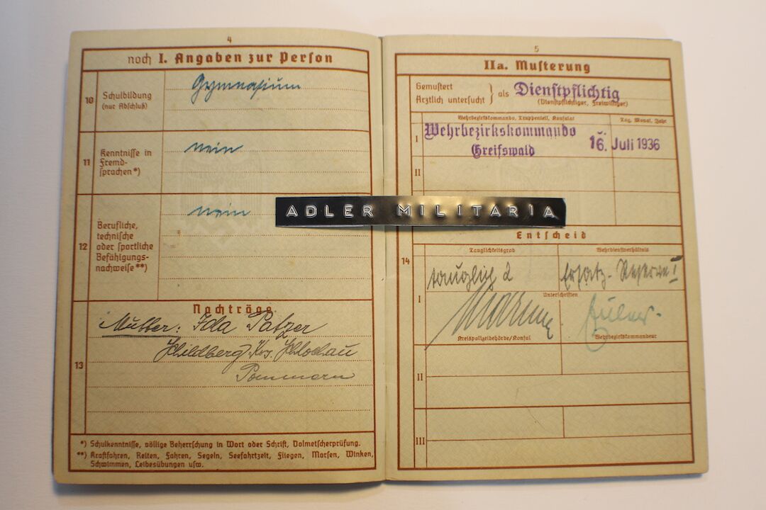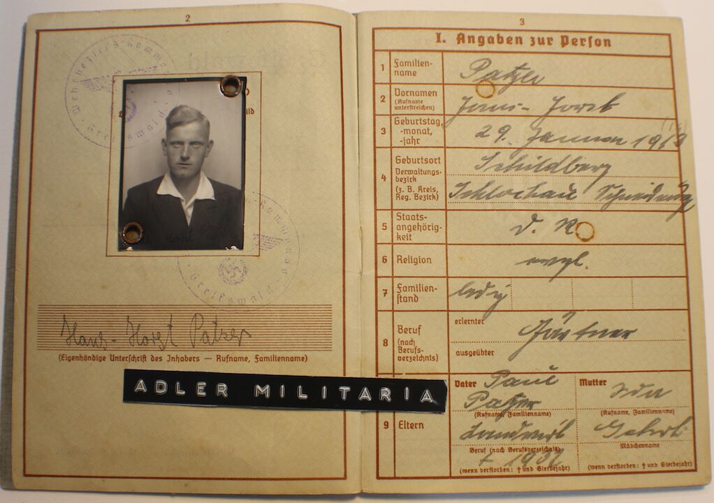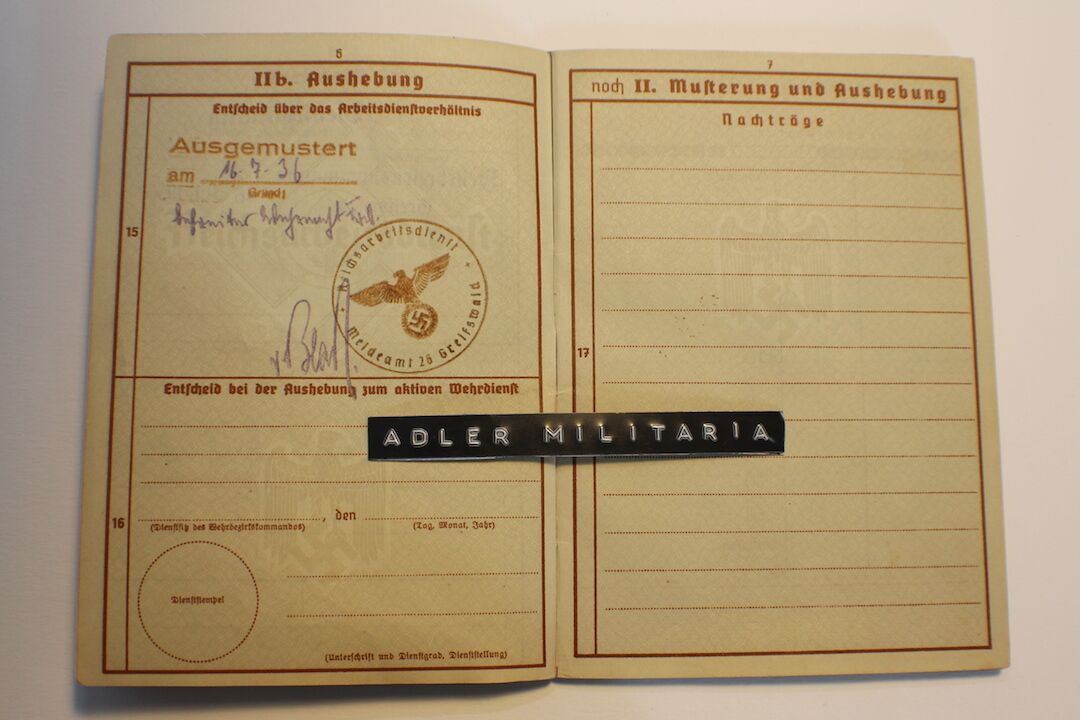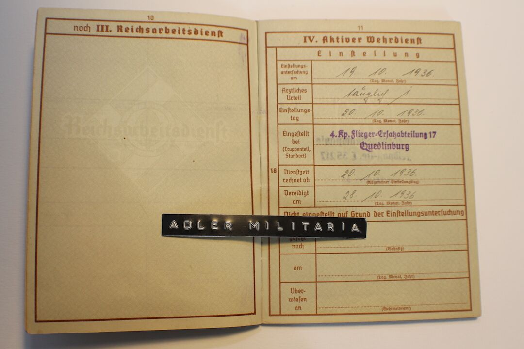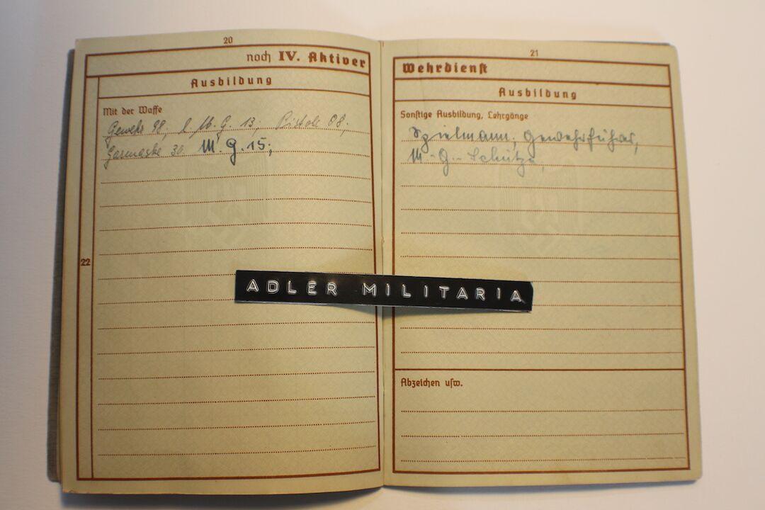 A nice interesting first model Wehrpass, Patzer was taken out of the RAD in 1936 to join a Luftwaffe Replacement Unit. He served in the Luftwaffe till Mid 1943, he was a trained MG15 Gunner!