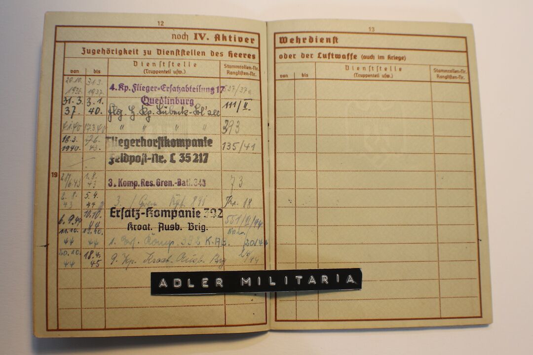 Wehrpass – Patzer – Oberfeldwebel (NCO) CROATIAN UNIT! Croatian Medals & EK2!