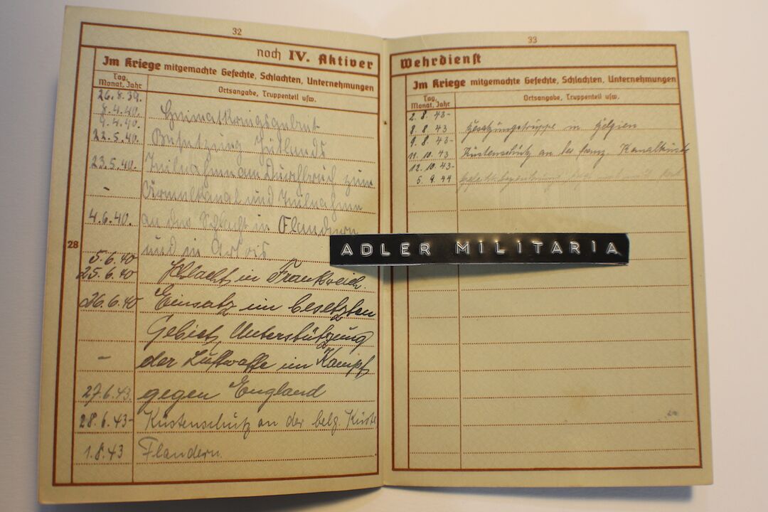 He served with this unit in Germany, then in the fight against France, Armel Kanal, then Belgium (Flandern) Then again fighting in France n 1940. He then went into combat with the Luftwaffe on the fight against England! See page 32.