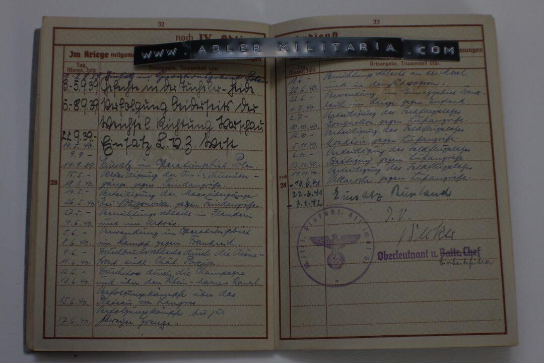 He served the Sudetenland then in Poland in 1939, in France in 1940 and in Russia during the outbreak of war in 1941.