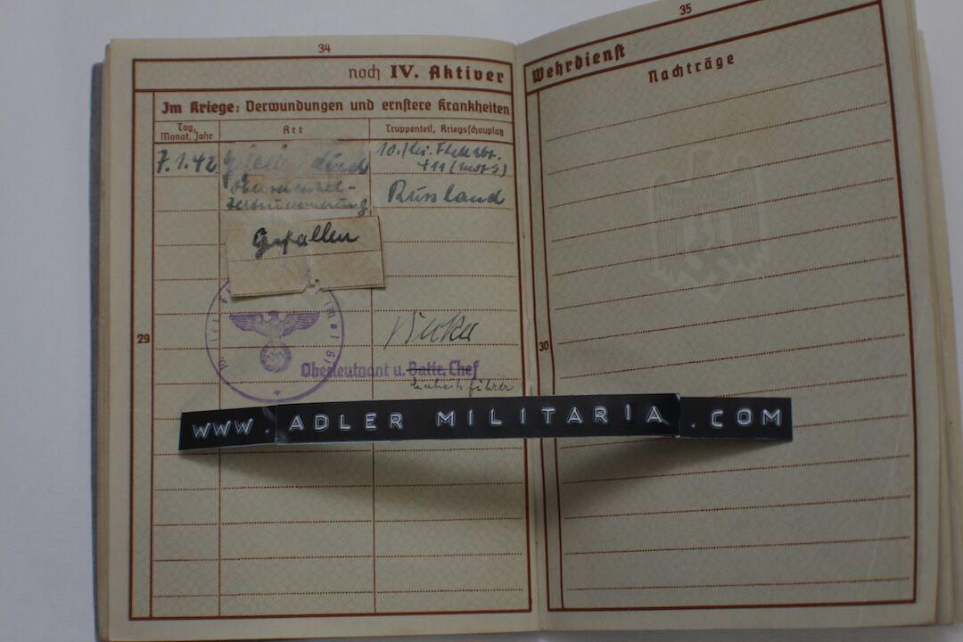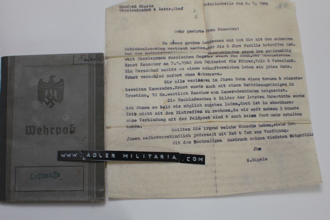 This Wehrpass comes with a letter informing his Mother of the details surrounding his death.