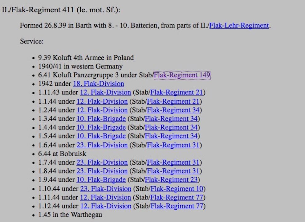 His last Unit was – 1./ Flak Rgt 411 (mot s)