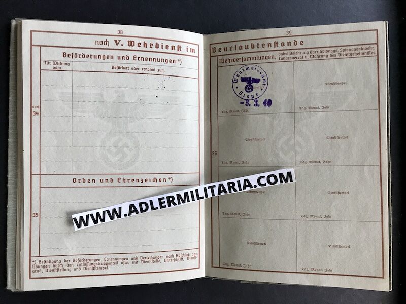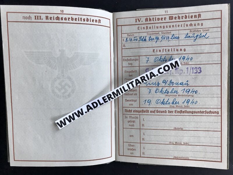 Sworn an Oath on October 1940 with a replacement Infantry unit.