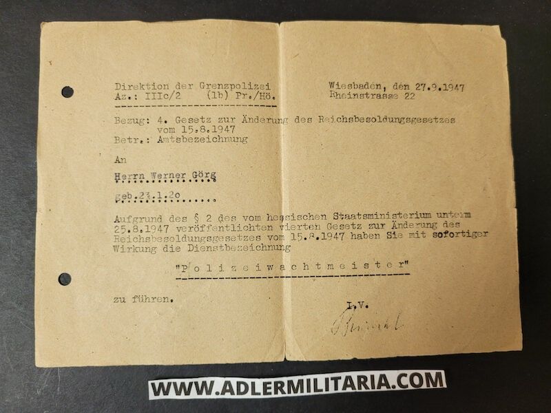 - Document from 1947 – Border Police West Germany