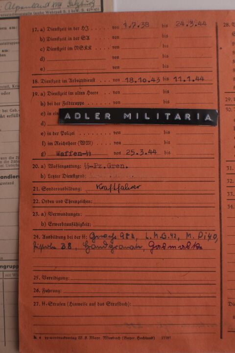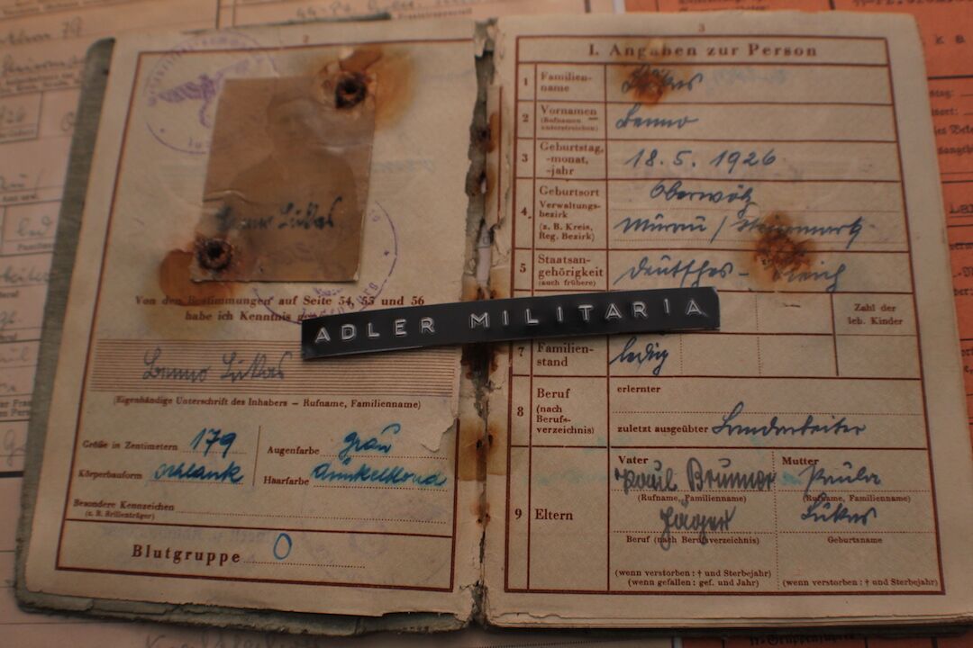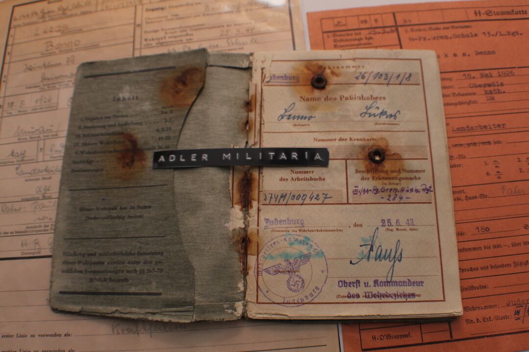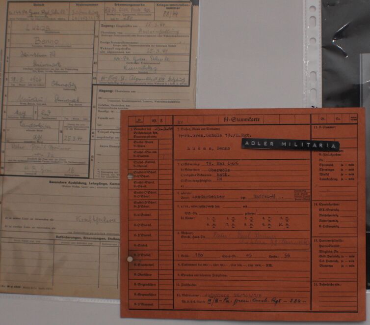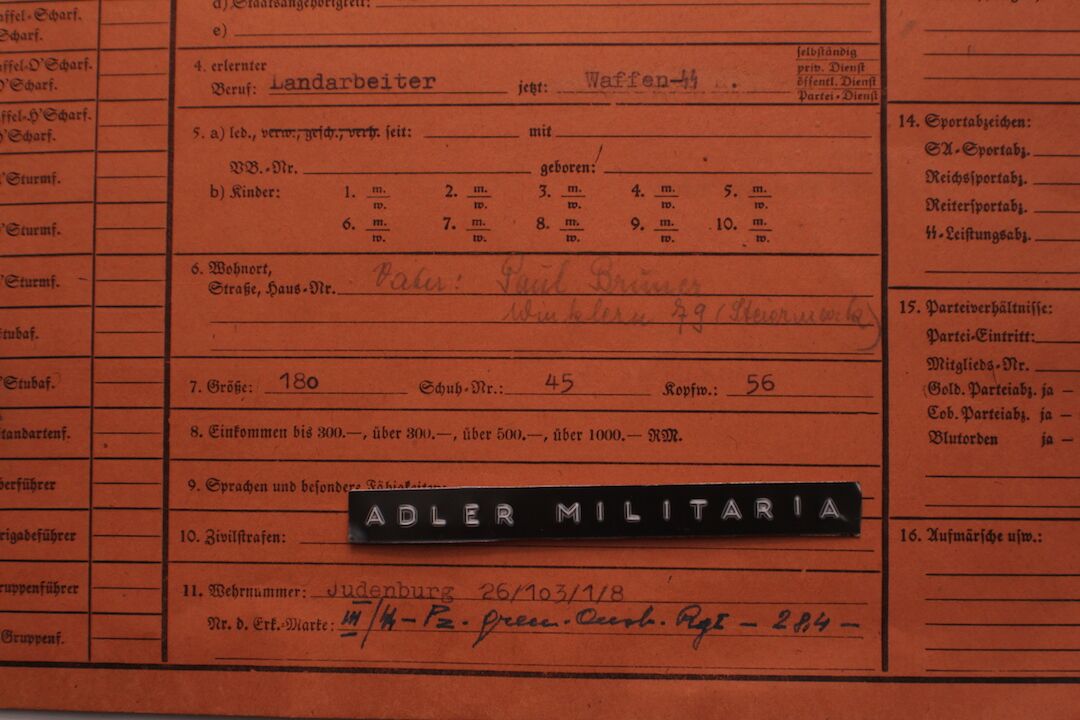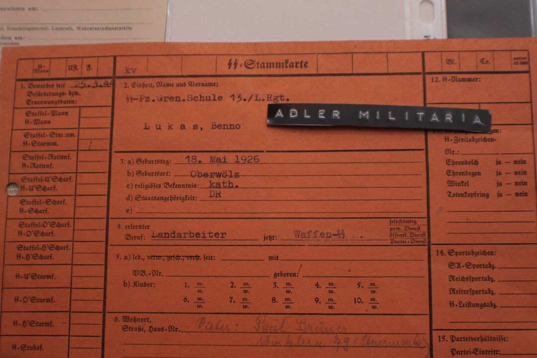 Comes with two more original SS Documents, his SS StammKarte is the Pinkish one.