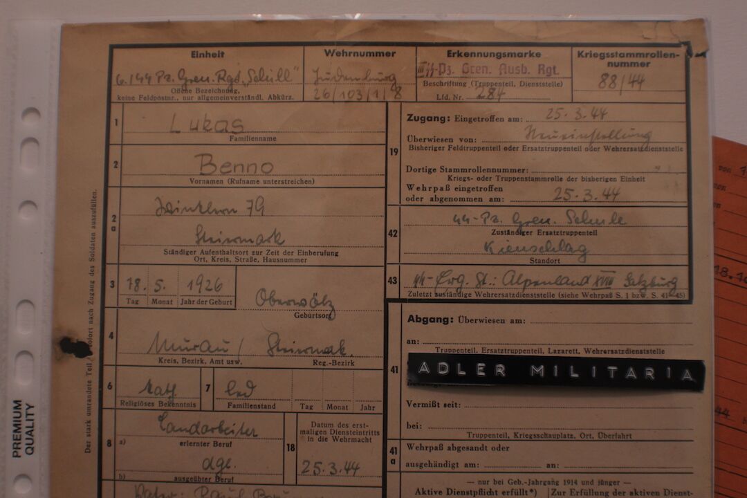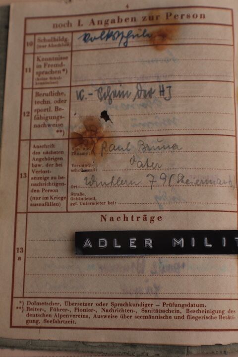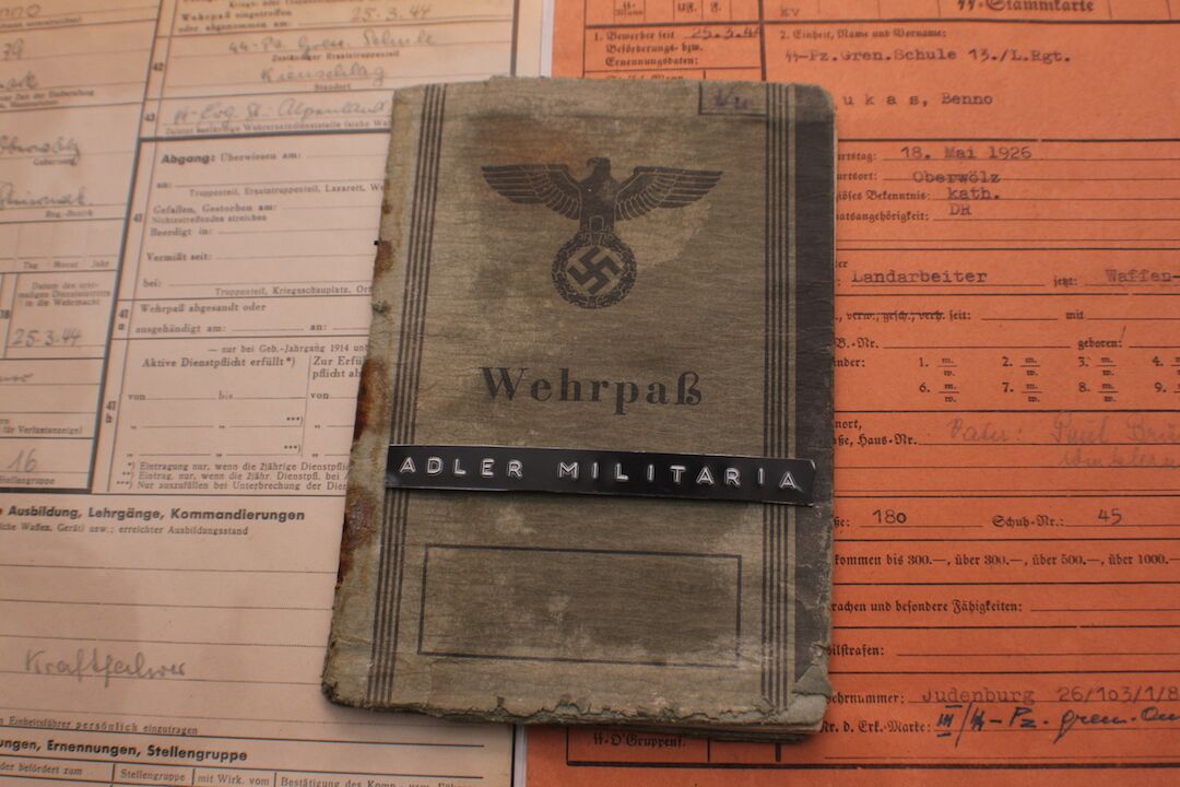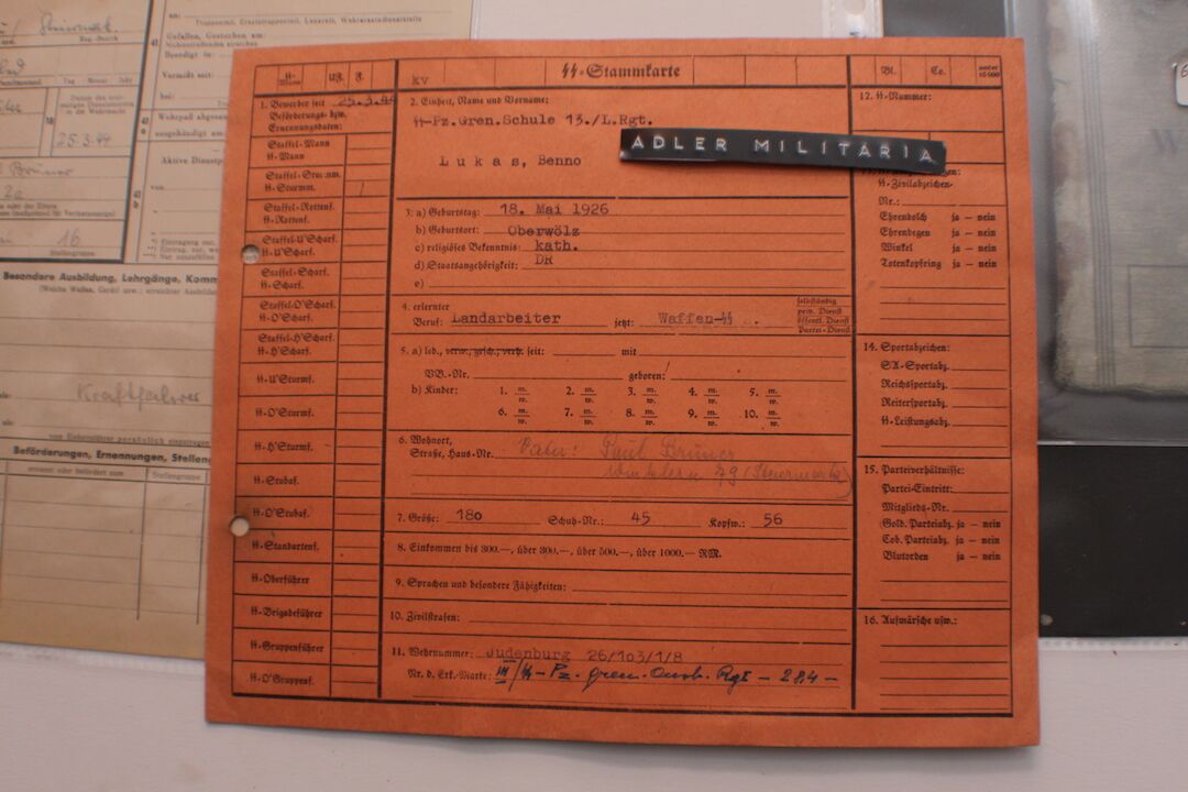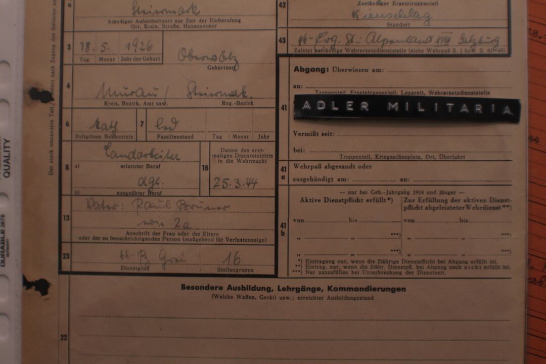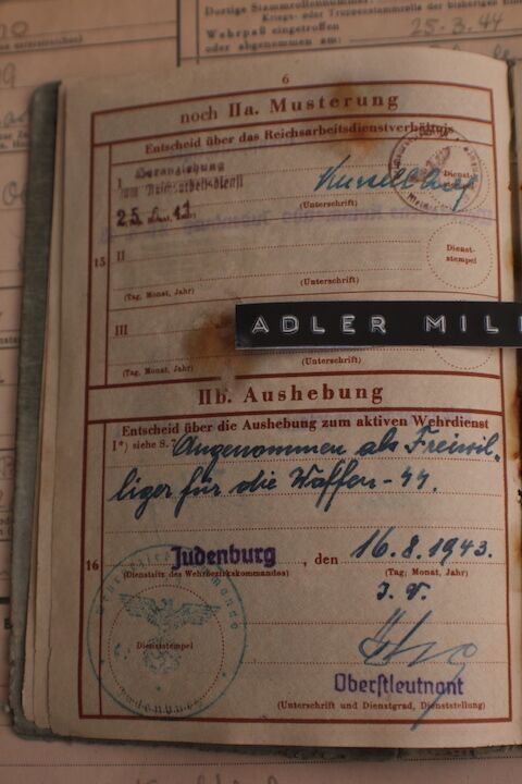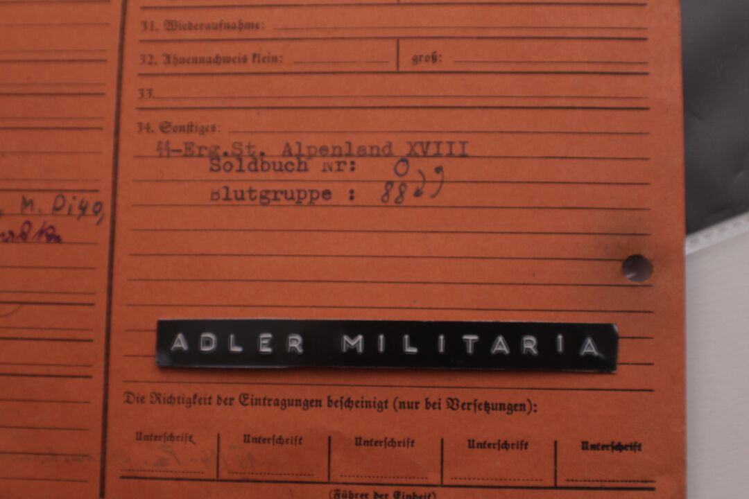 Comes with two more original SS Documents, his SS StammKarte is the Pinkish one.