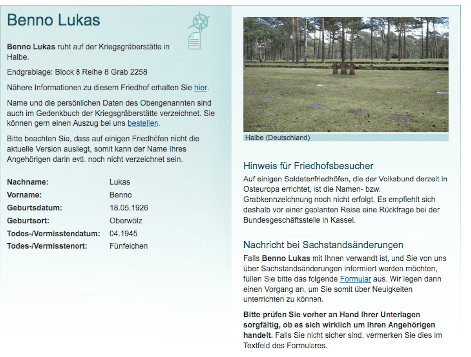 His grave is marked online, and could be visited in the Halbe.