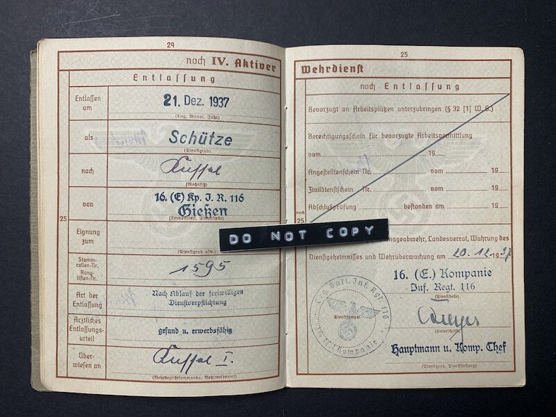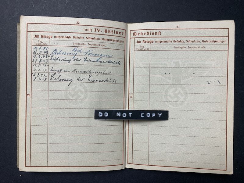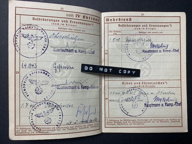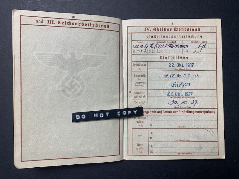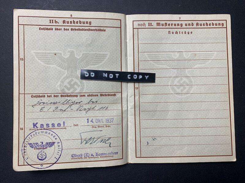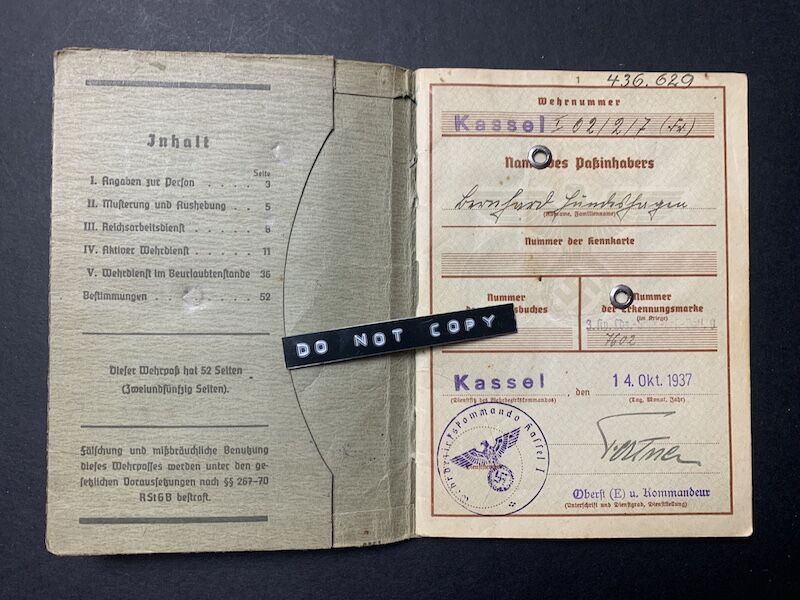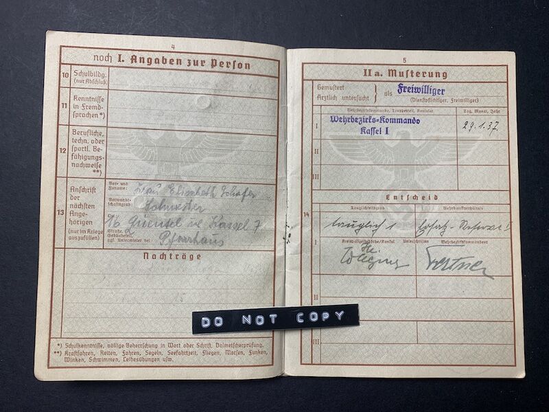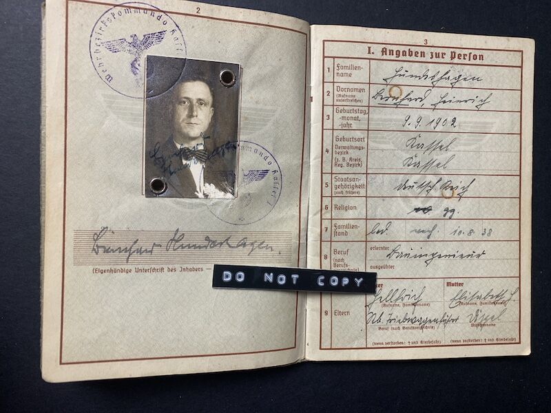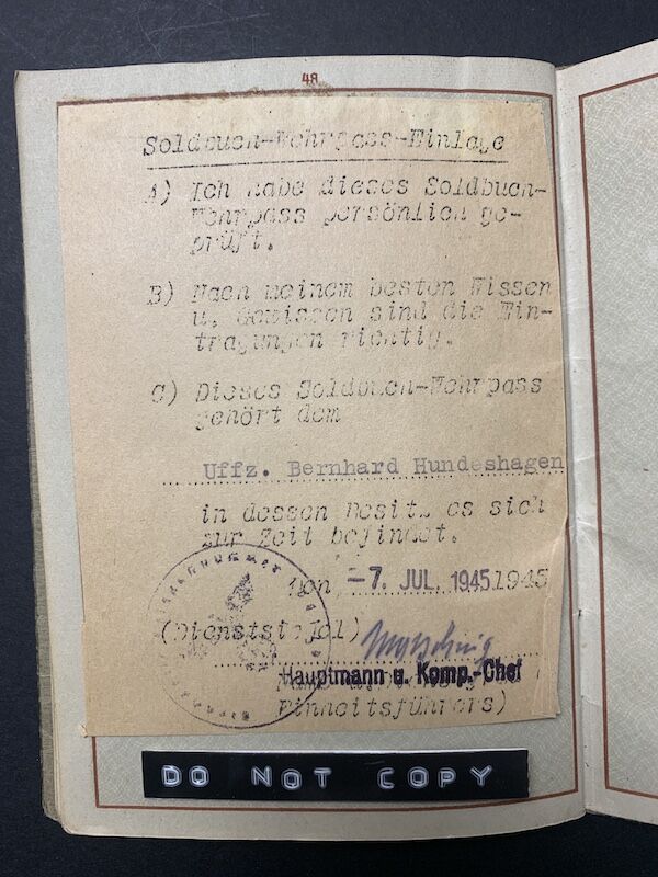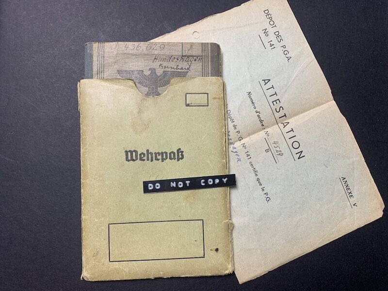 Wehrpass to Unteroffizier Hundeshagen