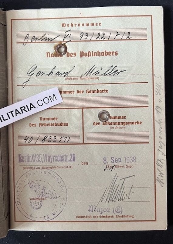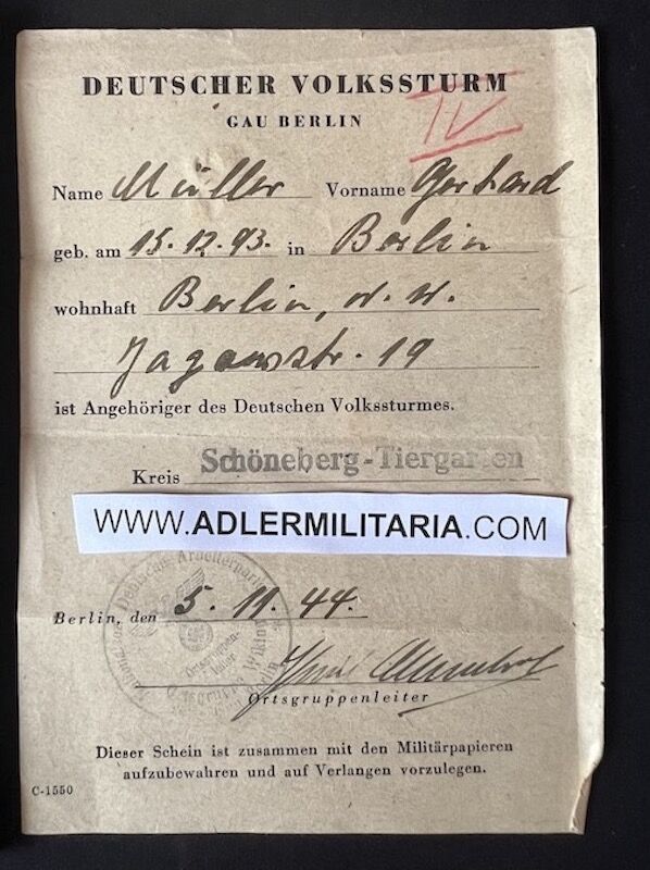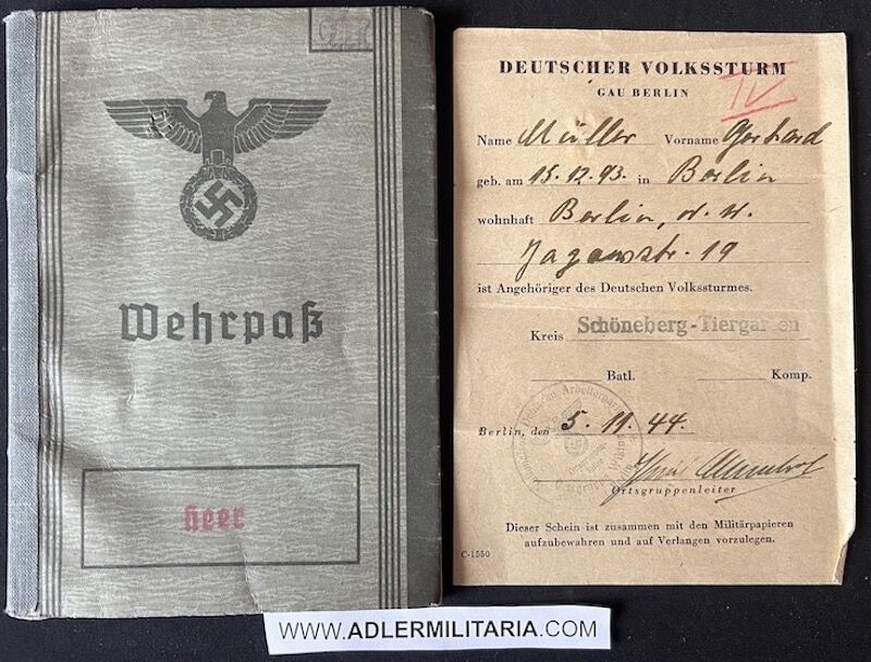 Wehrpass – Volksstrum Berlin – Müller – Berlin VS Batl 487 – Battle of Berlin 1945 (Offer Accepted)