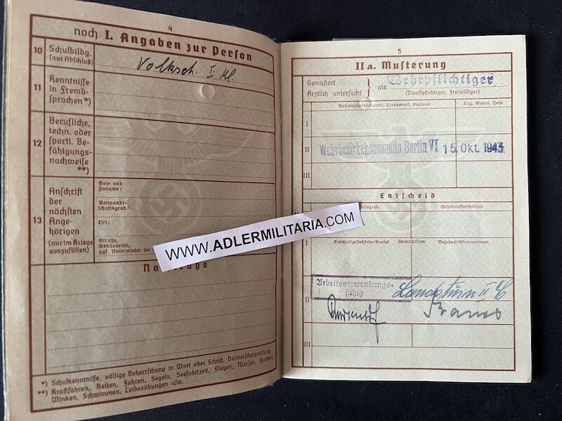A nice Wehrpass for a WW1 Veteran who was called up to the Berliner Volkssturm.