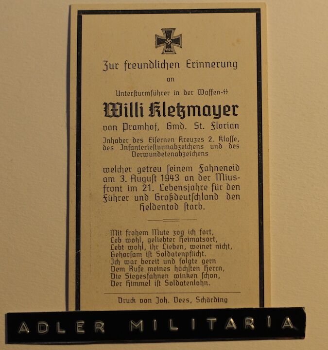 Willi Kletzmayer – SS NCO – Regiment Deutschland! EK2, IAB, WB and more!