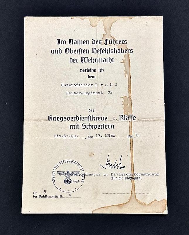 - KVK 2nd Class with Swords Document Reiter Regiment 22 – Signed by:Kurt Feldt (22 November 1897 – 11 March 1970) was a general in the Wehrmacht of Nazi Germany during World War II. He was a recipient of the Knight’s Cross of the Iron Cross. He was the German commander in the Battle of the Afsluitdijk on 12-14 May 1940.