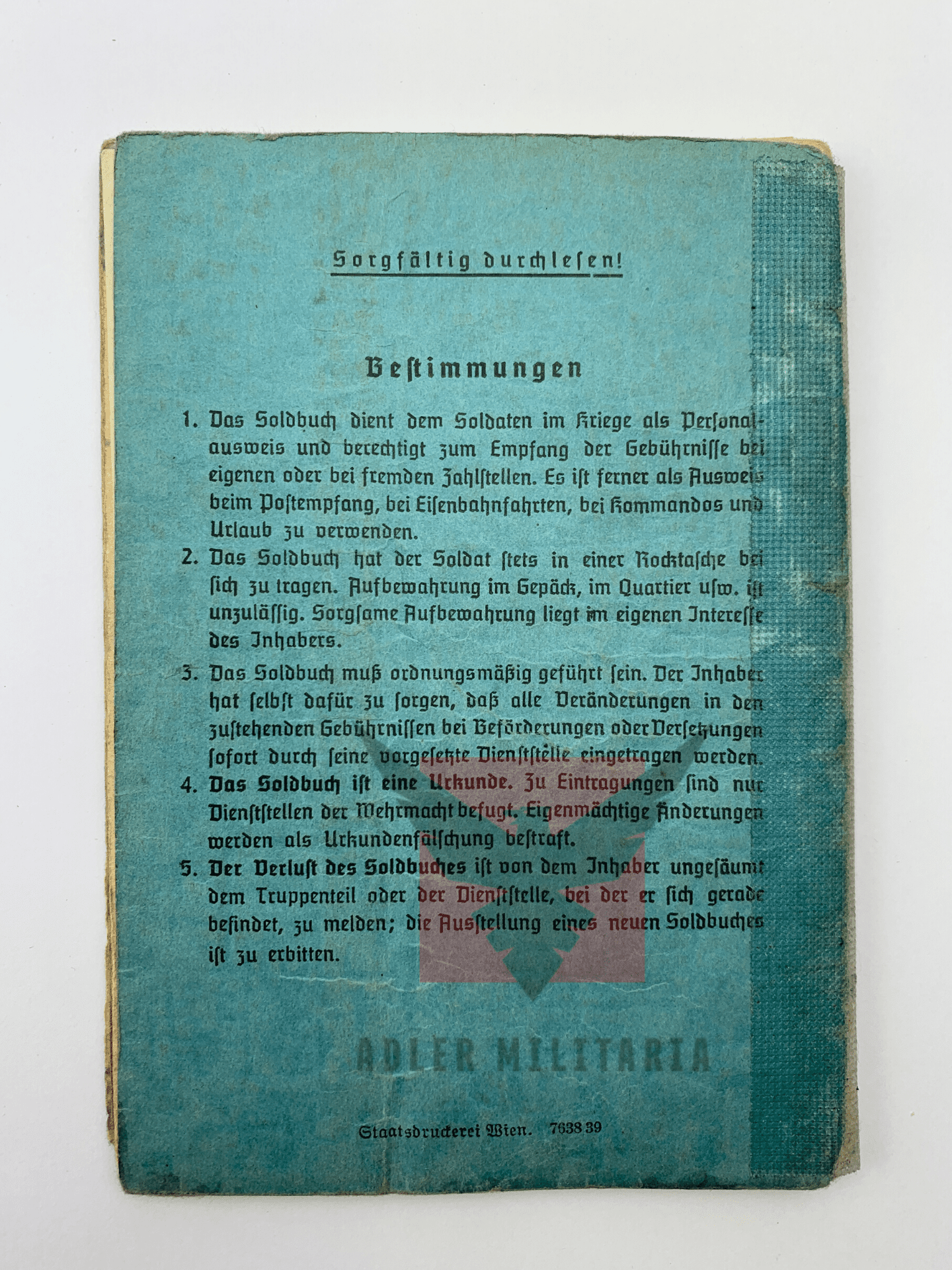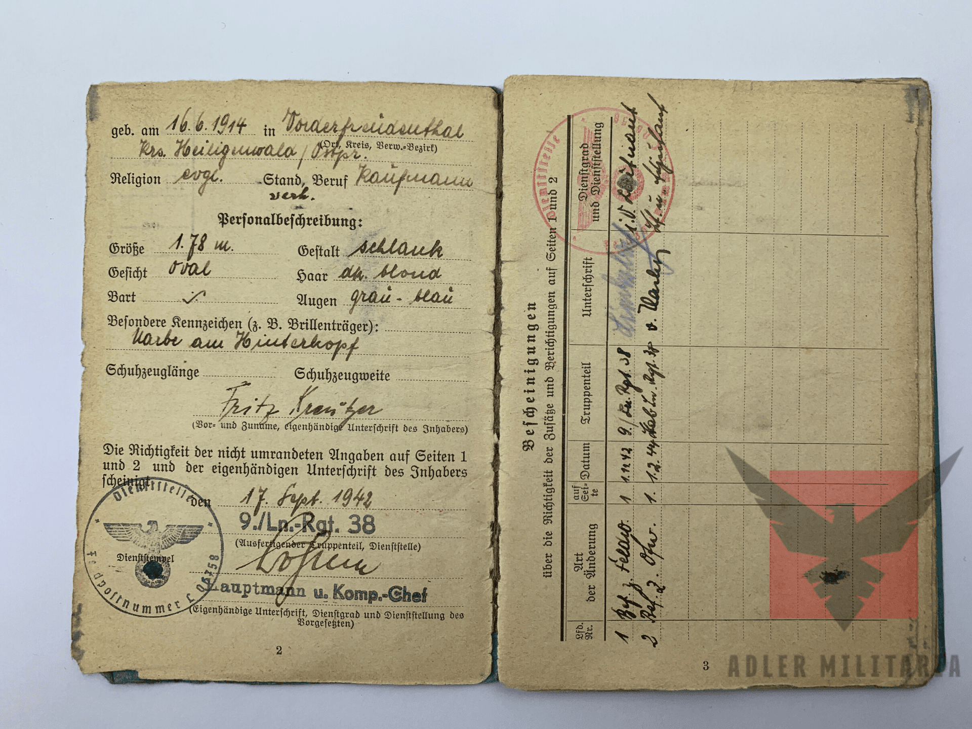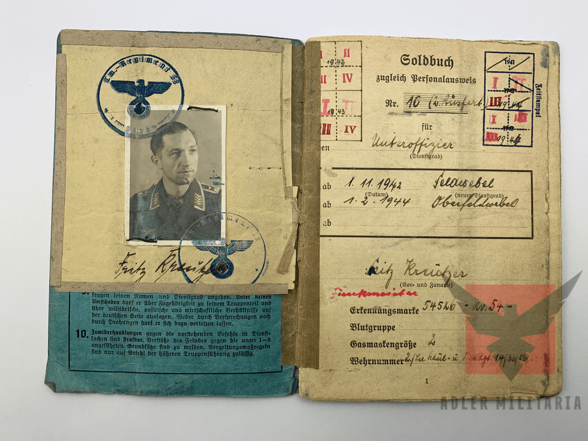 Soldbuch Issued – 2nd Issue – 17th of September by Luftnachrichten Regiment 38.
