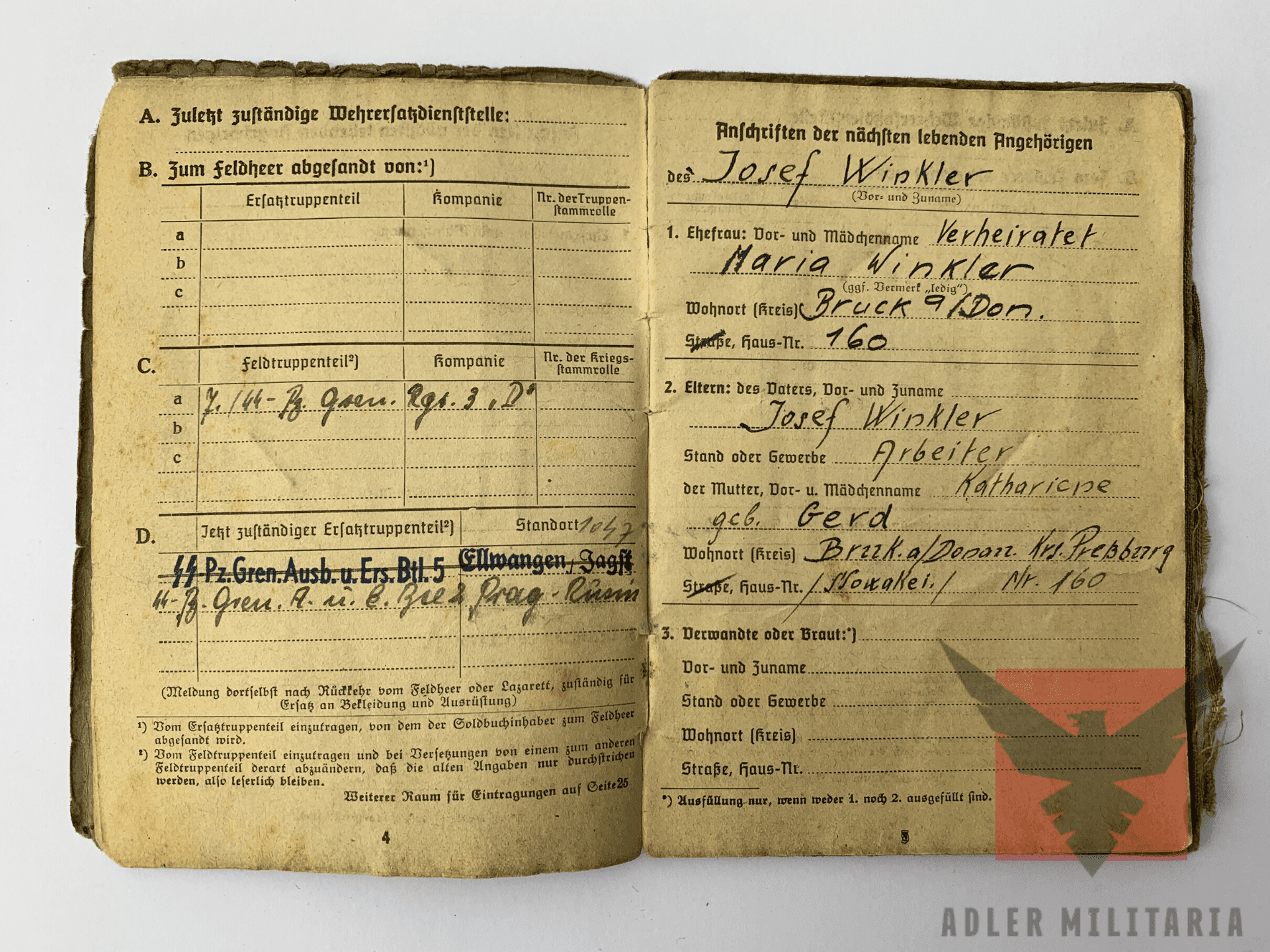 Before Winkler was enlisted in the Waffen SS, he served in the Slovakian Army (6 Pictures show his armed service including 200 days in Pressburg).