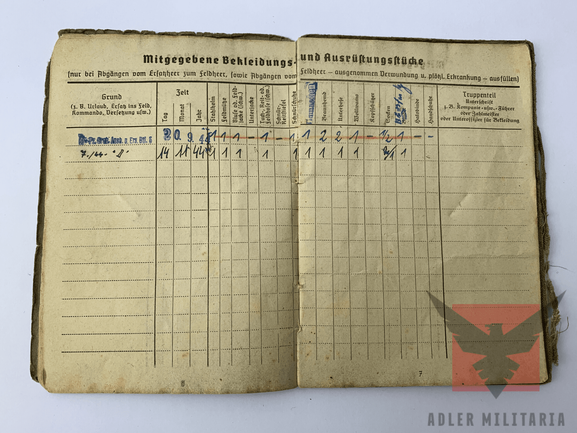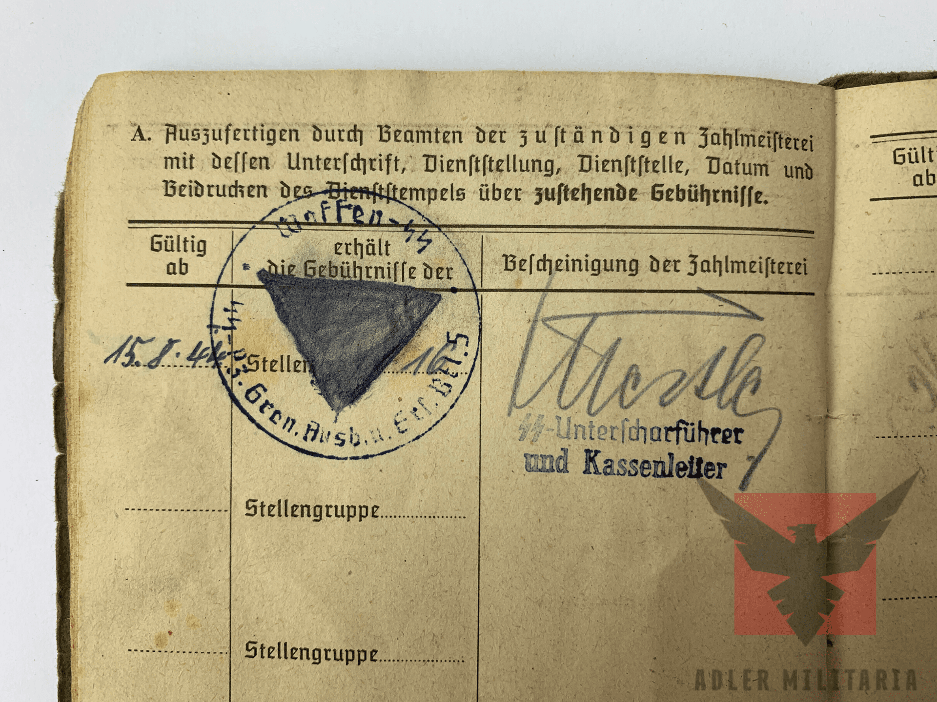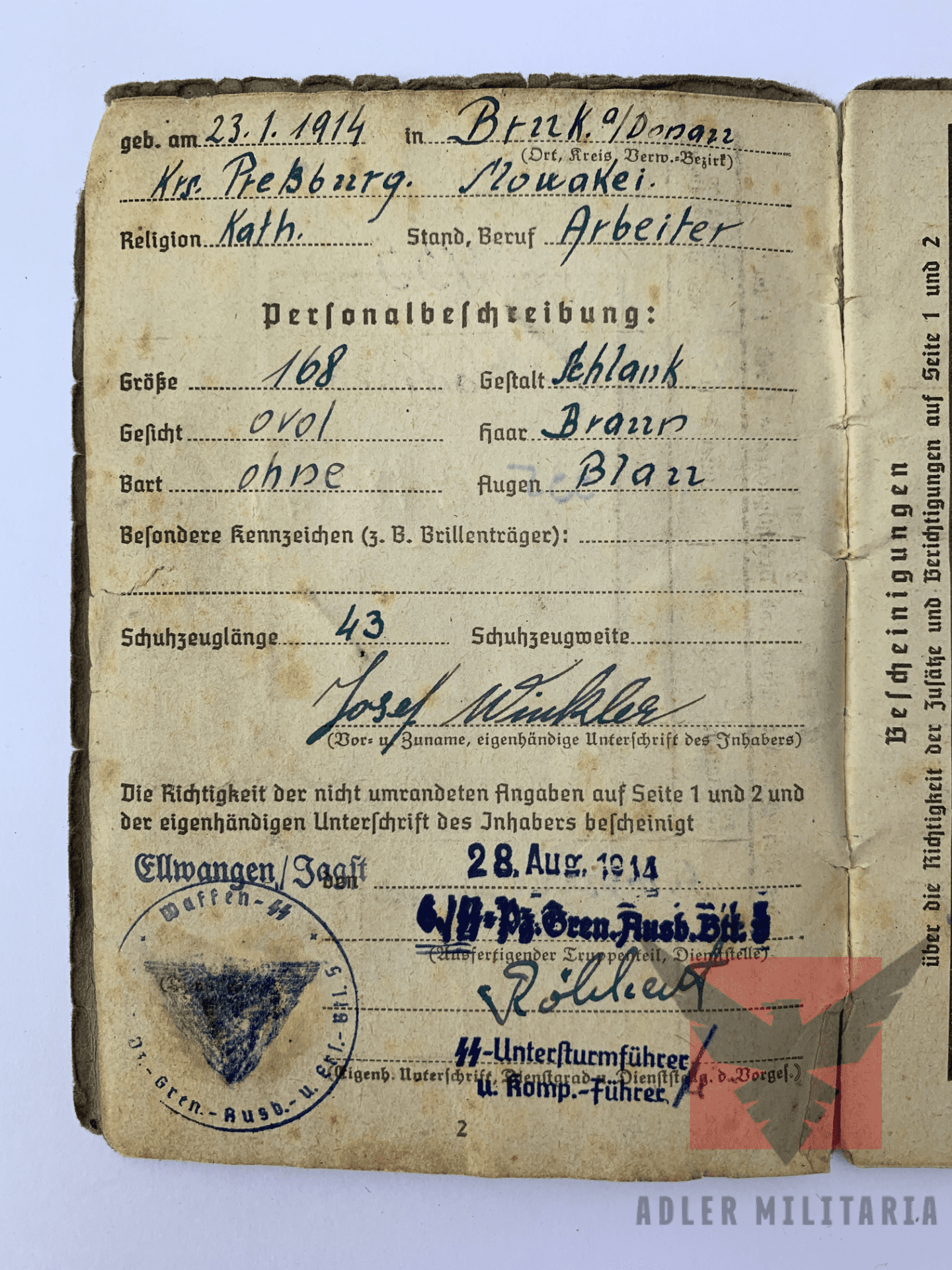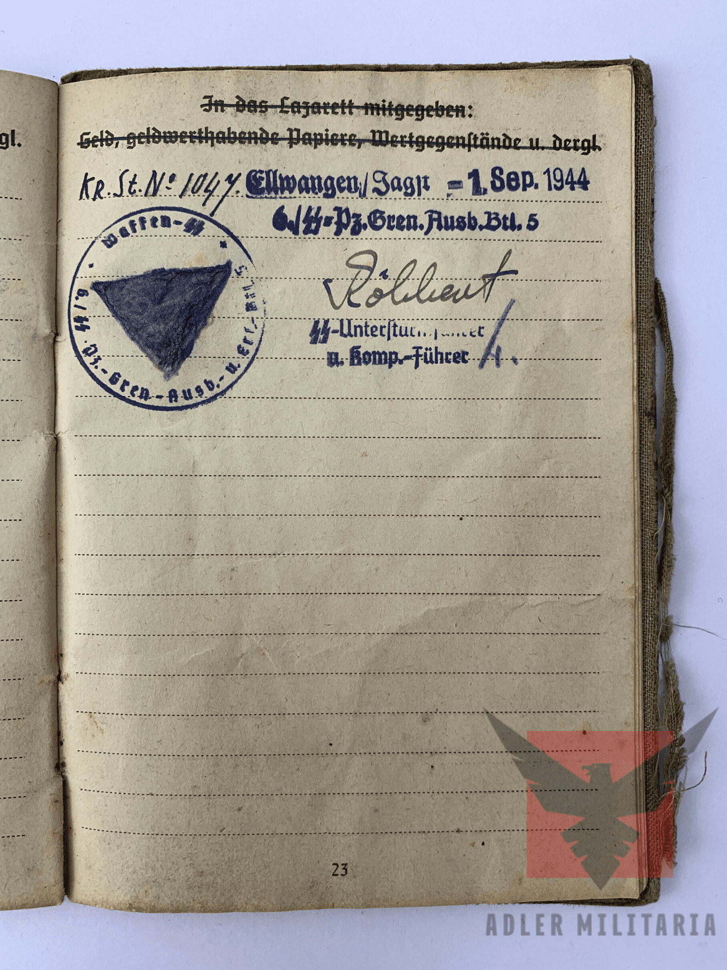 SS Soldbuch opened – 28.08.1944 in Ellwangen/Jagst.