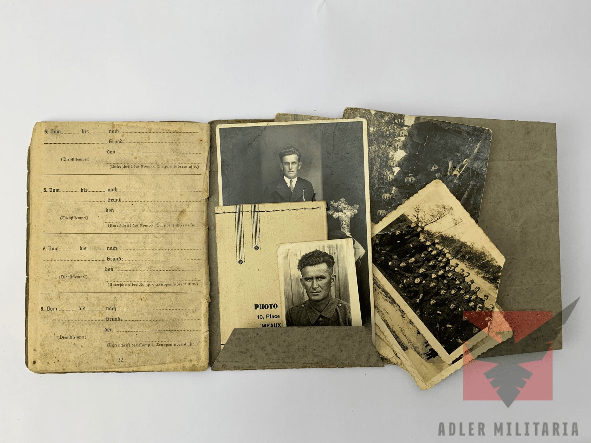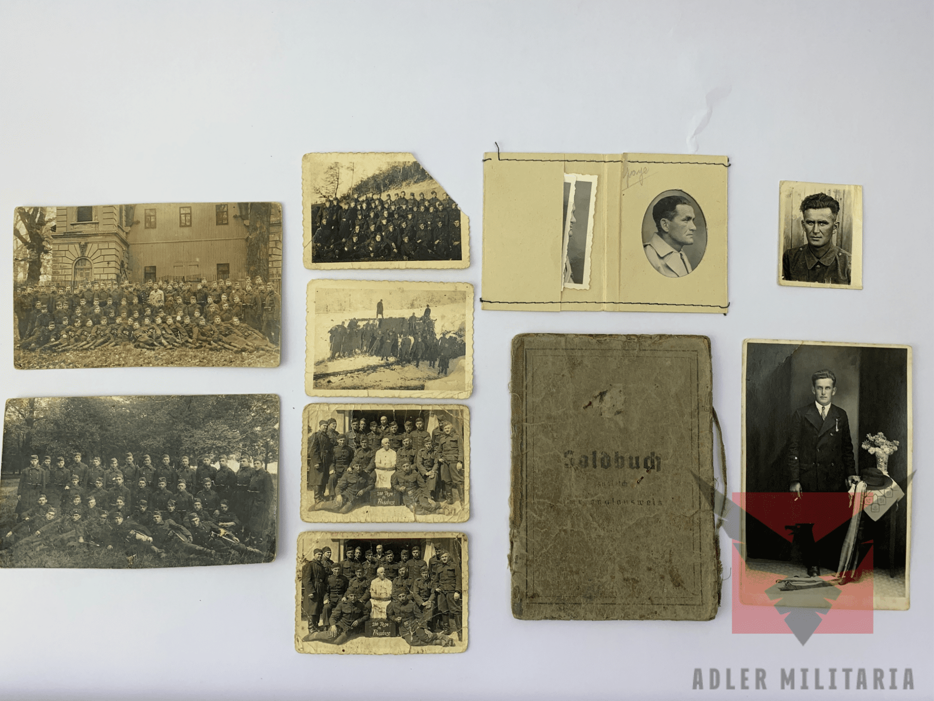 Winkler survived the war, pictures of him postwar were found in the rear pouch of his SS Soldbuch, including one large portrait of Winkler in 1936. A spare ID portrait photo for his SS documents, and two postwar portraits for documents.