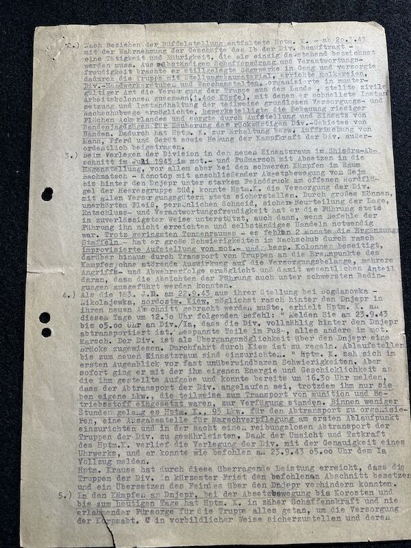 With the unit it seems Krause had mustered civilian labour in order to make straw shoes for 4500 Soldiers, and more Winter kit, as well as potatoes and even the material needed to make the small stoves in the bunkers work. Krause also fought off Partisans in order to get the supplies to where they were needed.