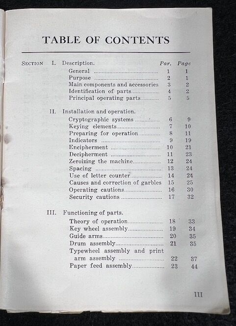 When properly set and operated it enciphered a plain text message of any length and automatically printed the enciphered text on a plain tape in five-letter groups.