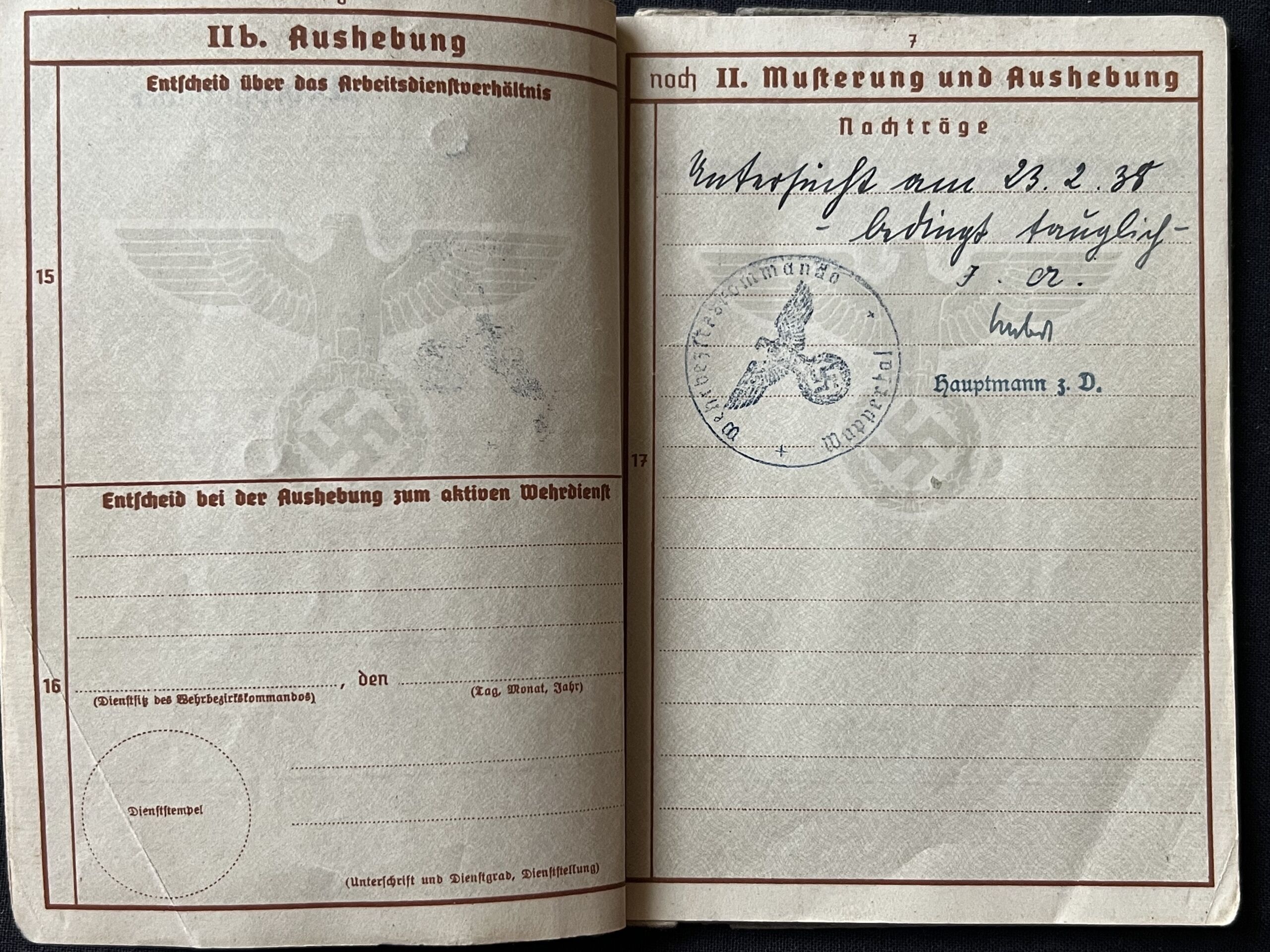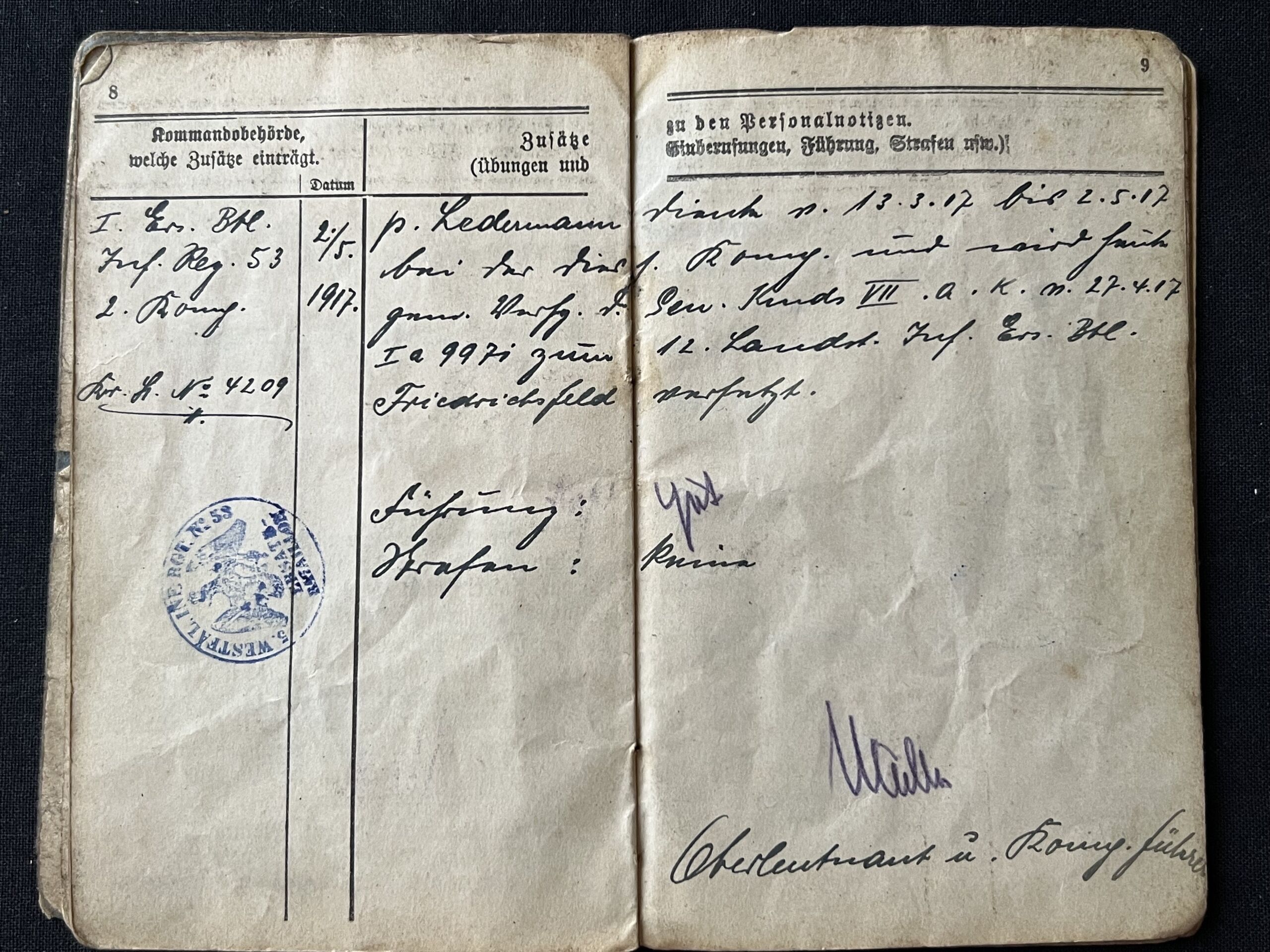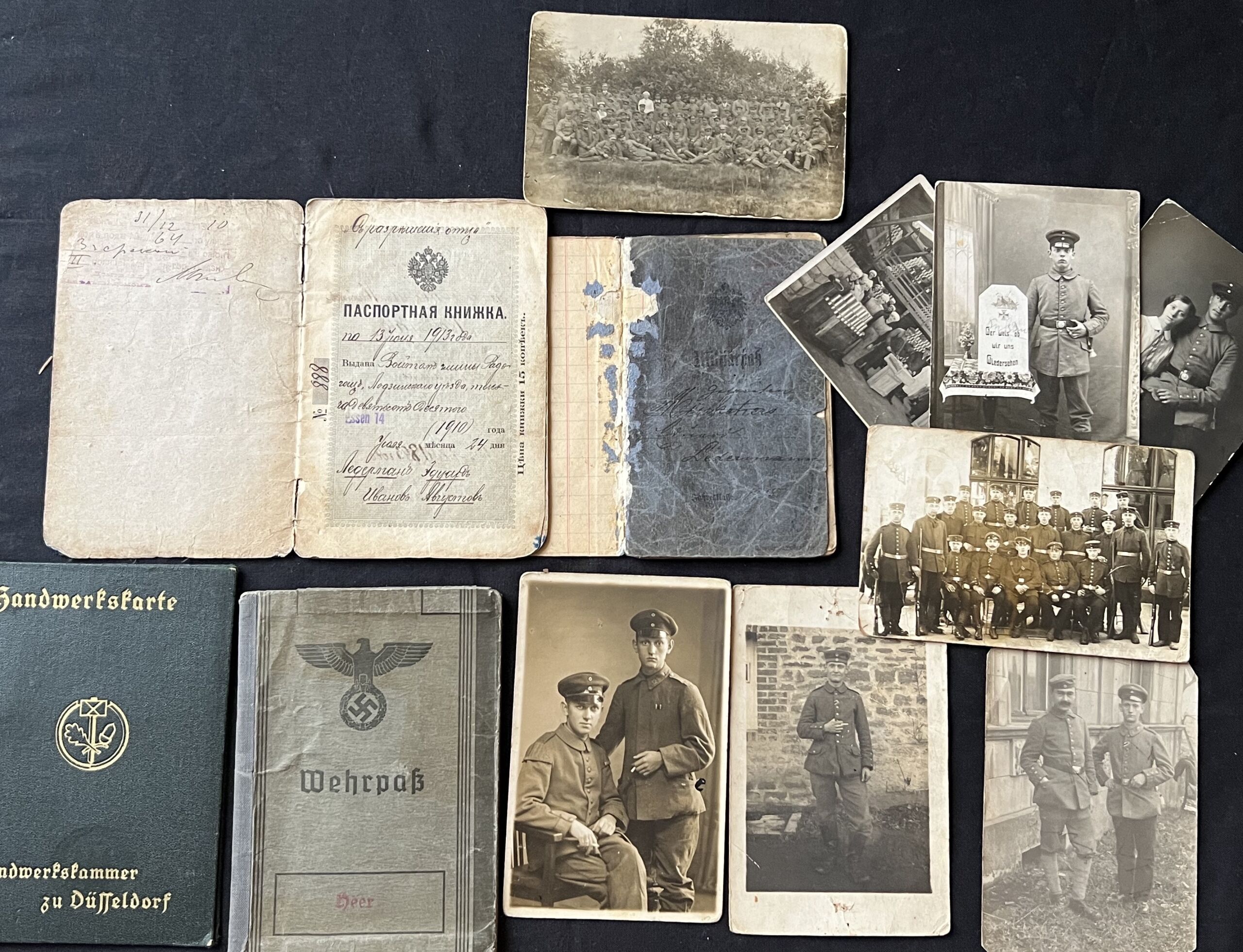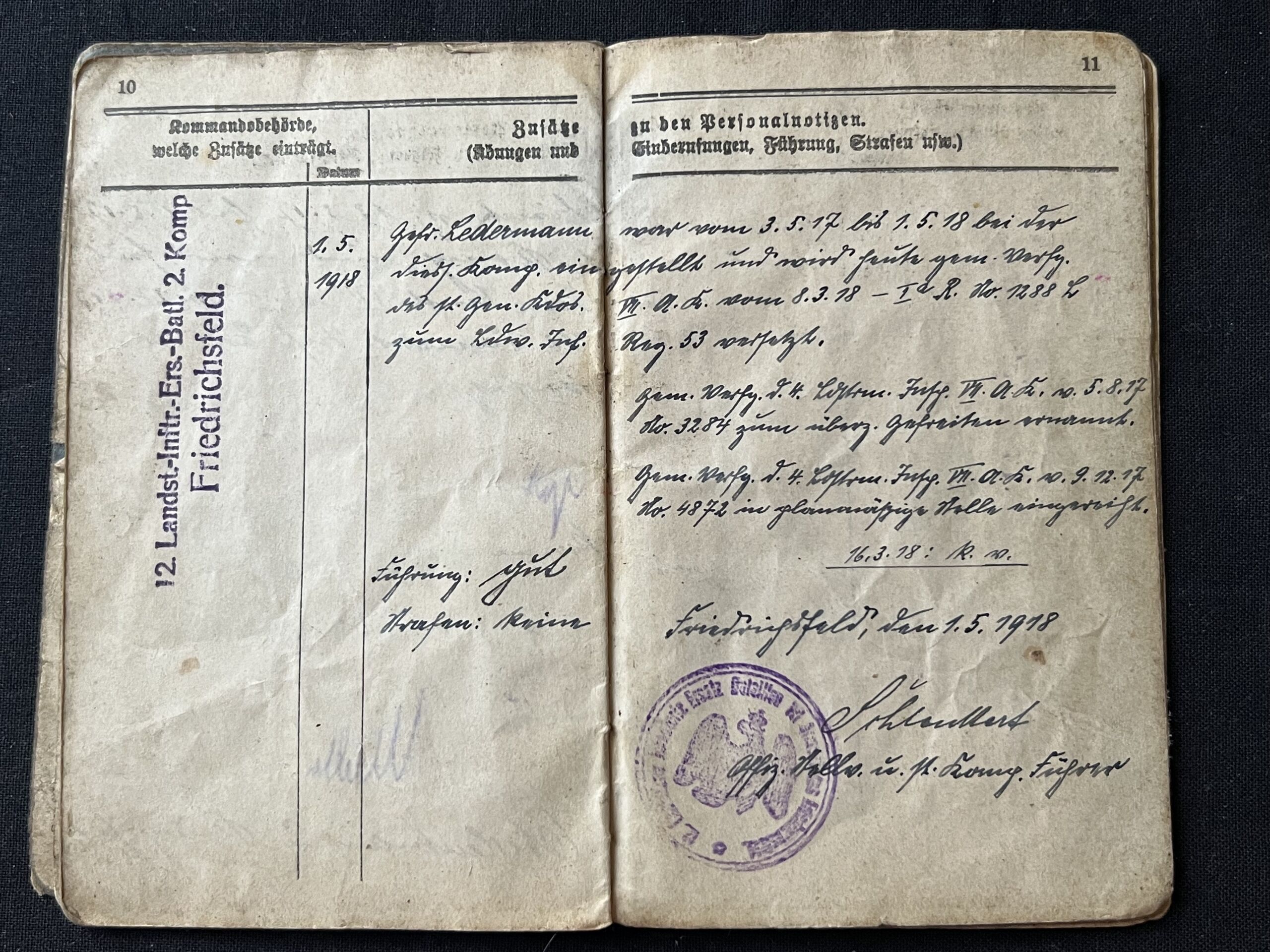WWI German Soldbuch / Wehrpass WWII – Photos – Uffz Ledermann – 15 Landwehr Division – Fort Vaux – Crimea Ukraine – Iron Cross – Wounds Badge (Sold)