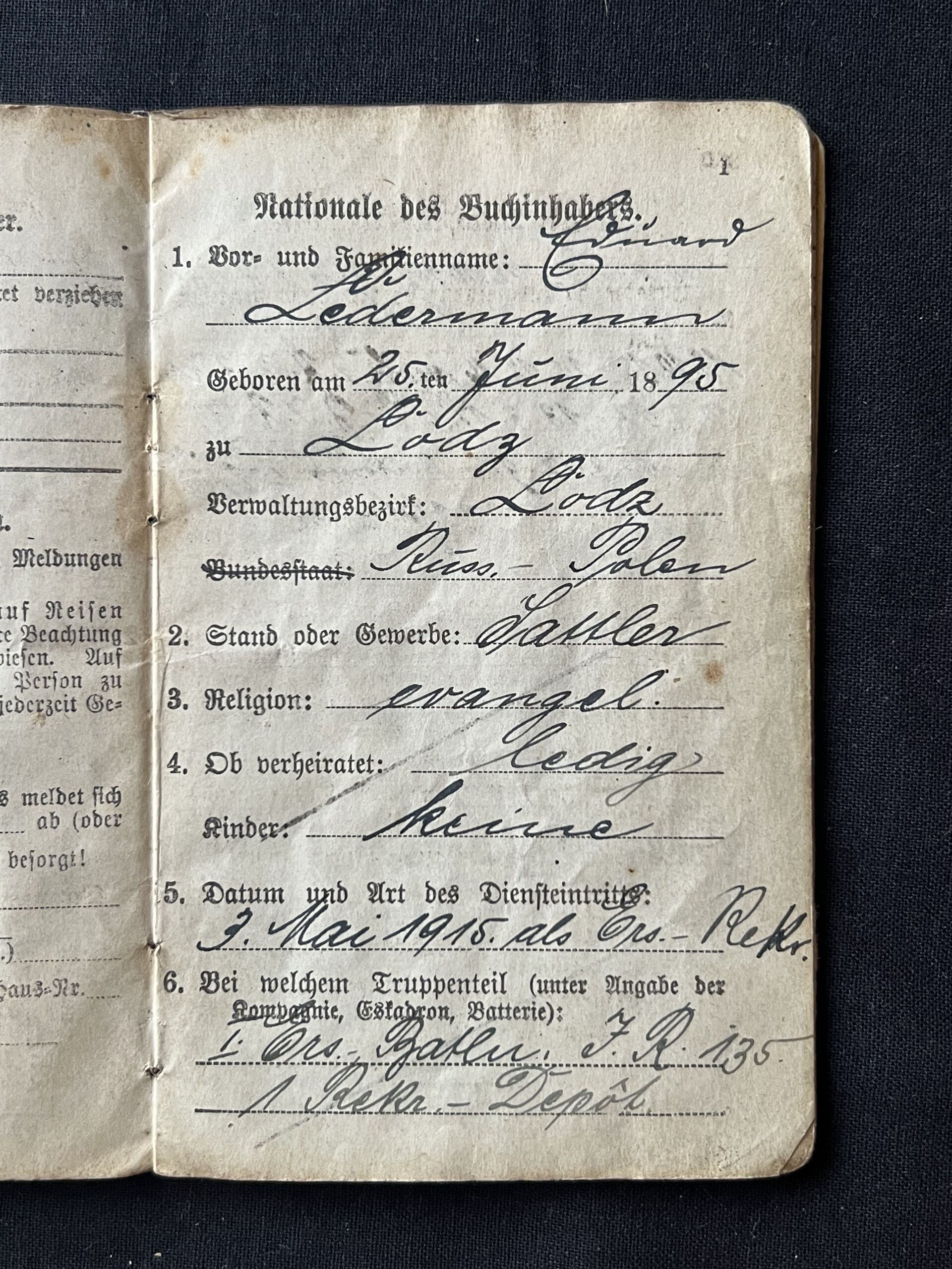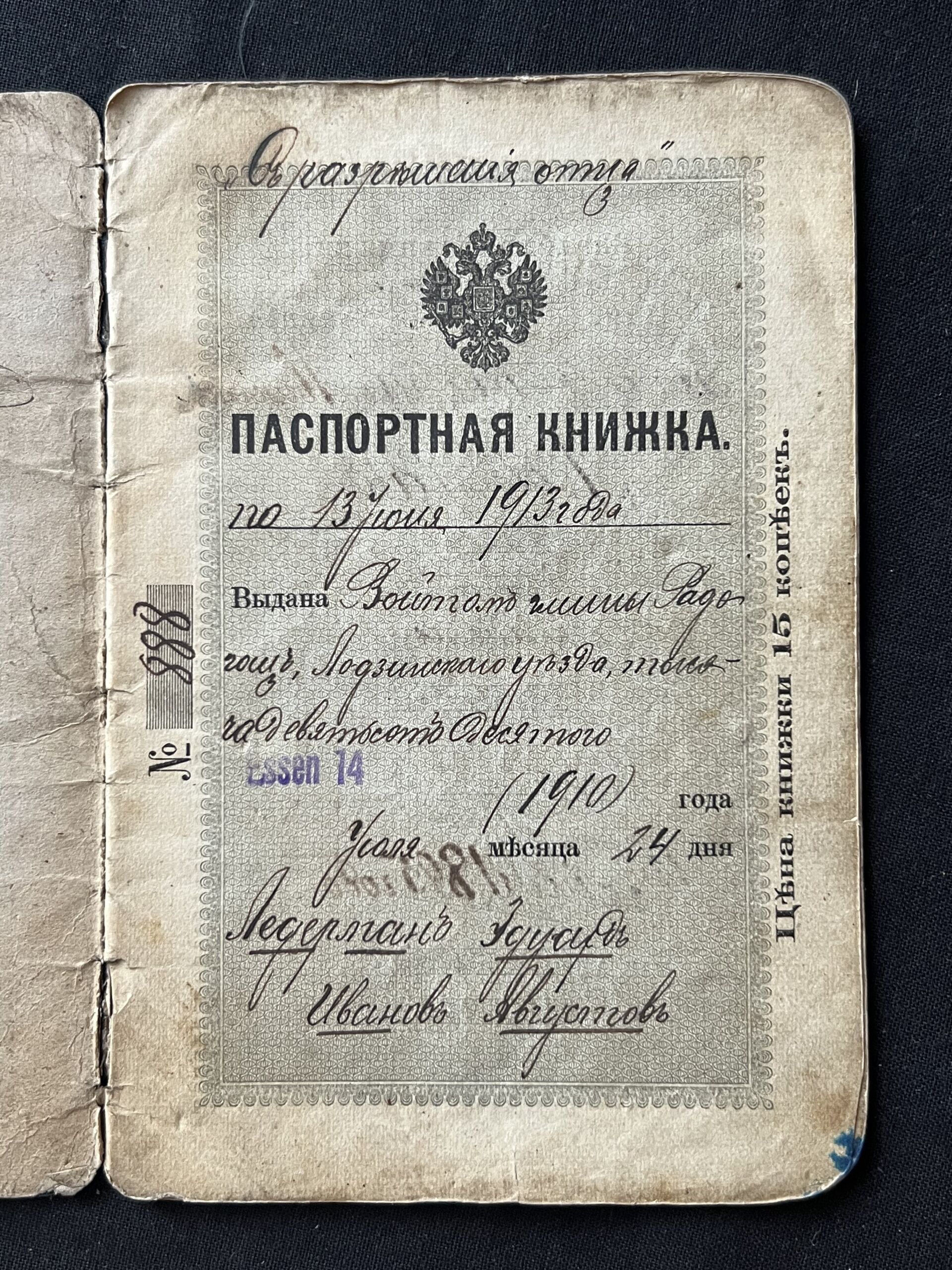 Lived in Russian Czarist Empire – issued a Czarist ID Booklet. Incredible: Piotrków Governorate (Russian: Петроковская губерния; Polish: Gubernia piotrkowska) was one of the administrative divisions (guberniya; gubernia) in the Kingdom of Poland, established in 1867 by splitting some areas of the Radom and Warsaw Governorates. Its capital was in Petrokov (Russian: Петроко́в) in modern day Piotrków Trybunalski.