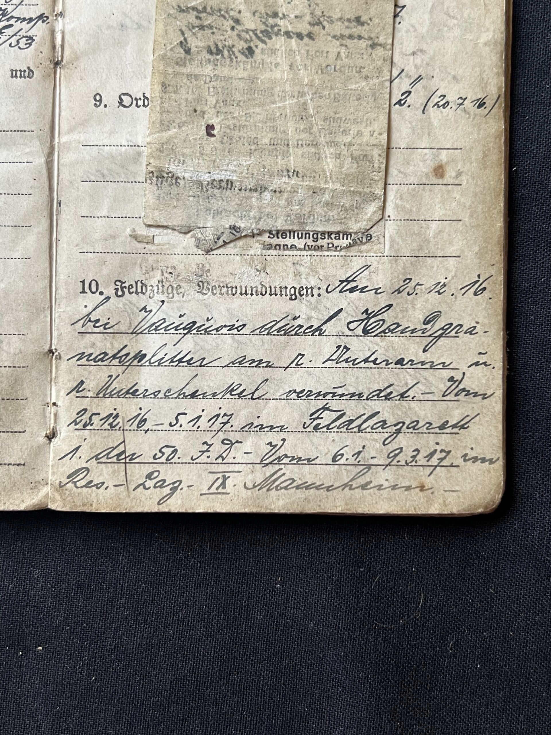 Iron Cross and Wounded by grenade splinters in Verdun 1916.